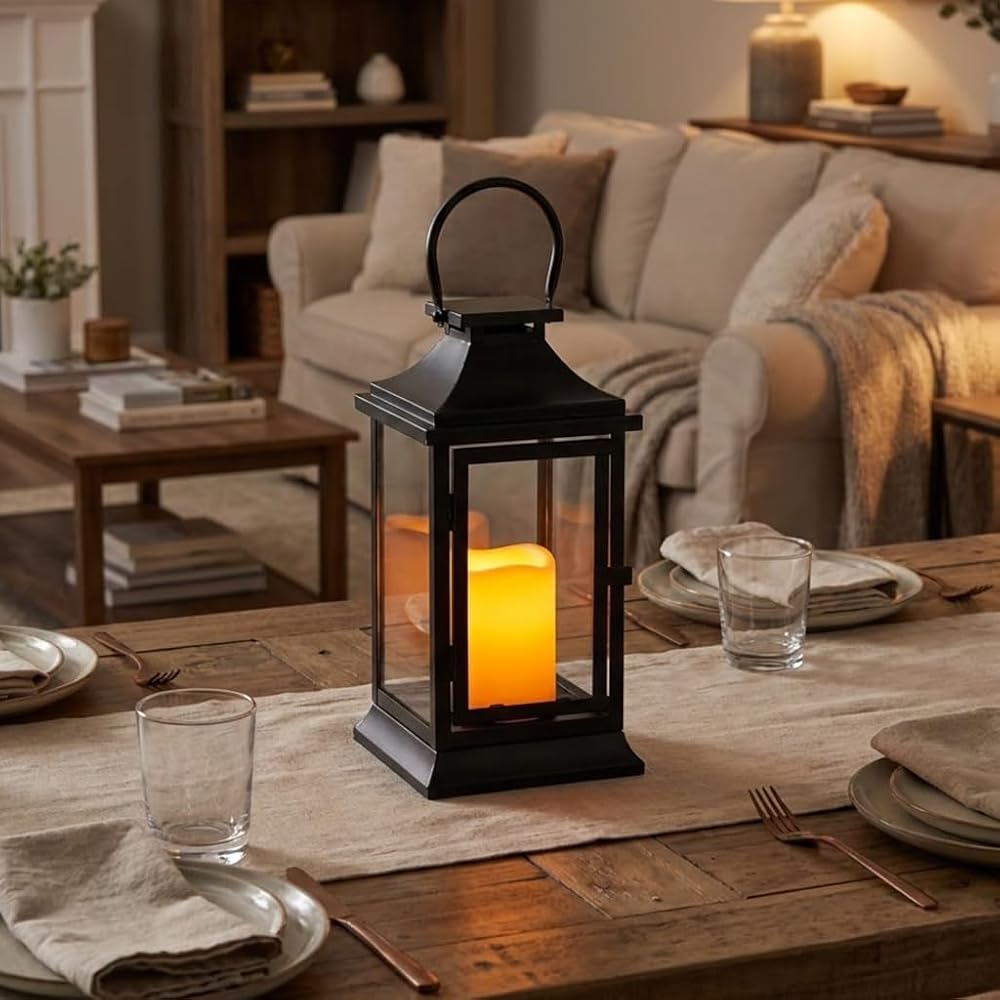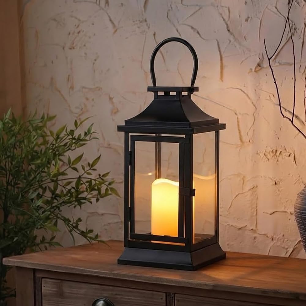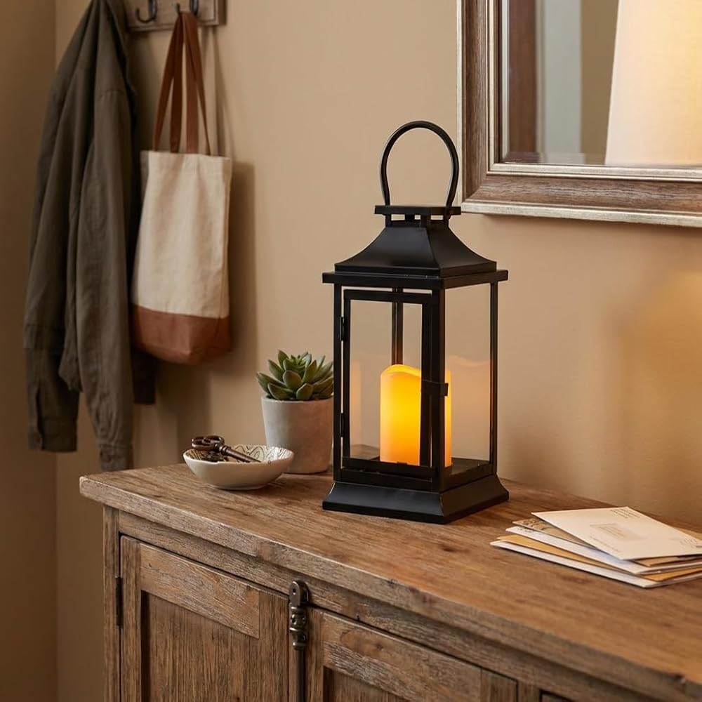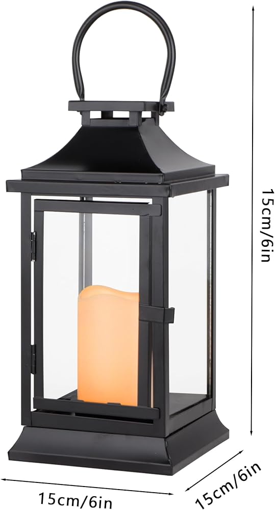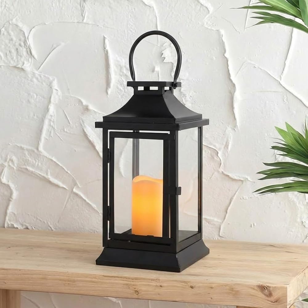 فانوس TRIROCKS التذكاري من المعدن الأسود الأنيق (5.91 × 5.91 × 12.01 بوصة) مع شمعة LED مدمجة مقاس 3 بوصات - يتميز بوضع مؤقت لمدة 6 ساعات لإضاءة مدروسة. يتطلب 3 بطاريات AAA (غير متضمنة). هدية تعاطف ذات مغزى للخسارة من الجدة أو الزوج أو الأم.