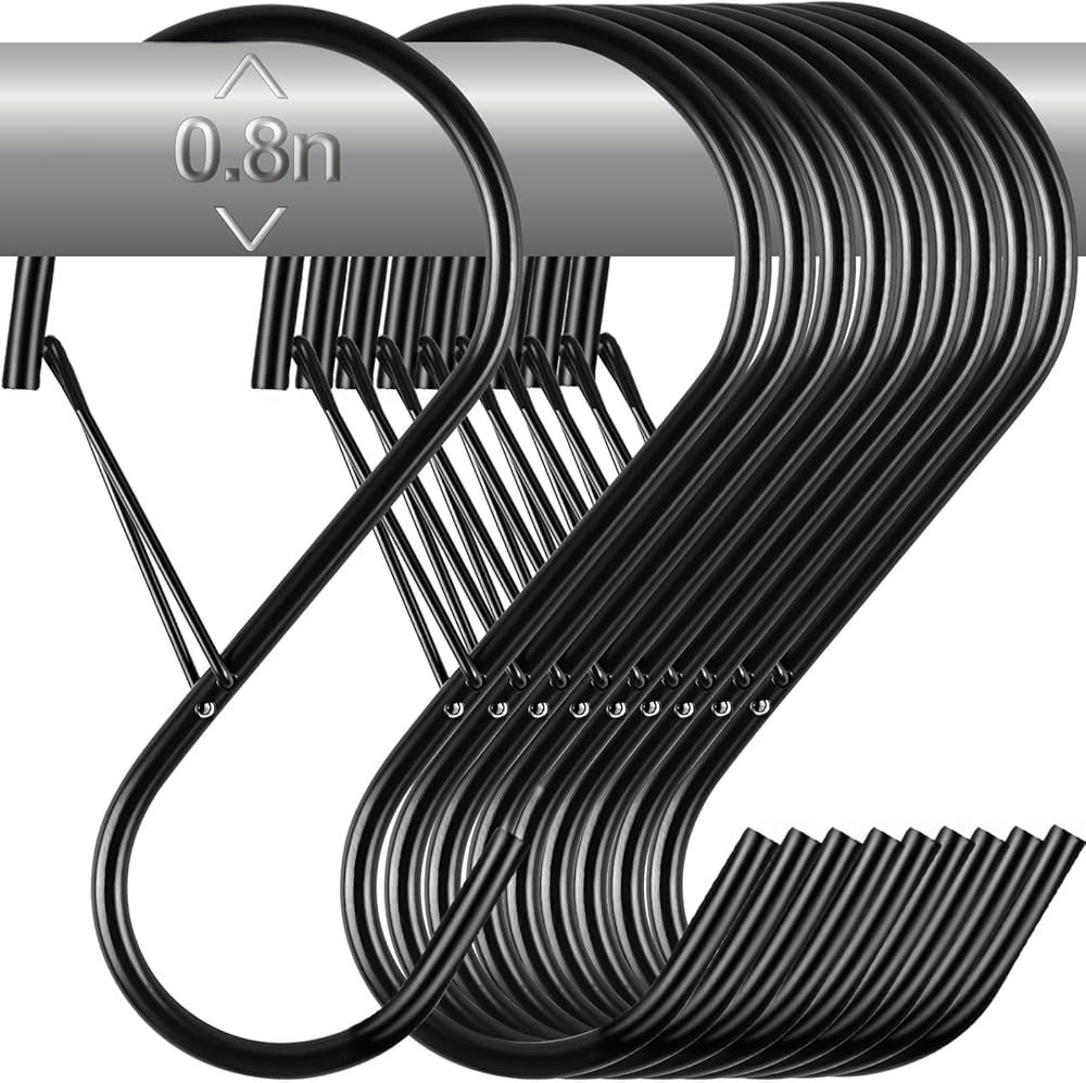 خطافات S مقاس 4 بوصات للتعليق بإبزيم أمان، 12 حزمة خطافات S شديدة التحمل لتعليق النباتات، وخطافات خزانة على شكل S، وخطافات معدنية على شكل S لتعليق الملابس، وأدوات المطبخ، والأواني والمقالي، والحقائب، والجينز (أسود)