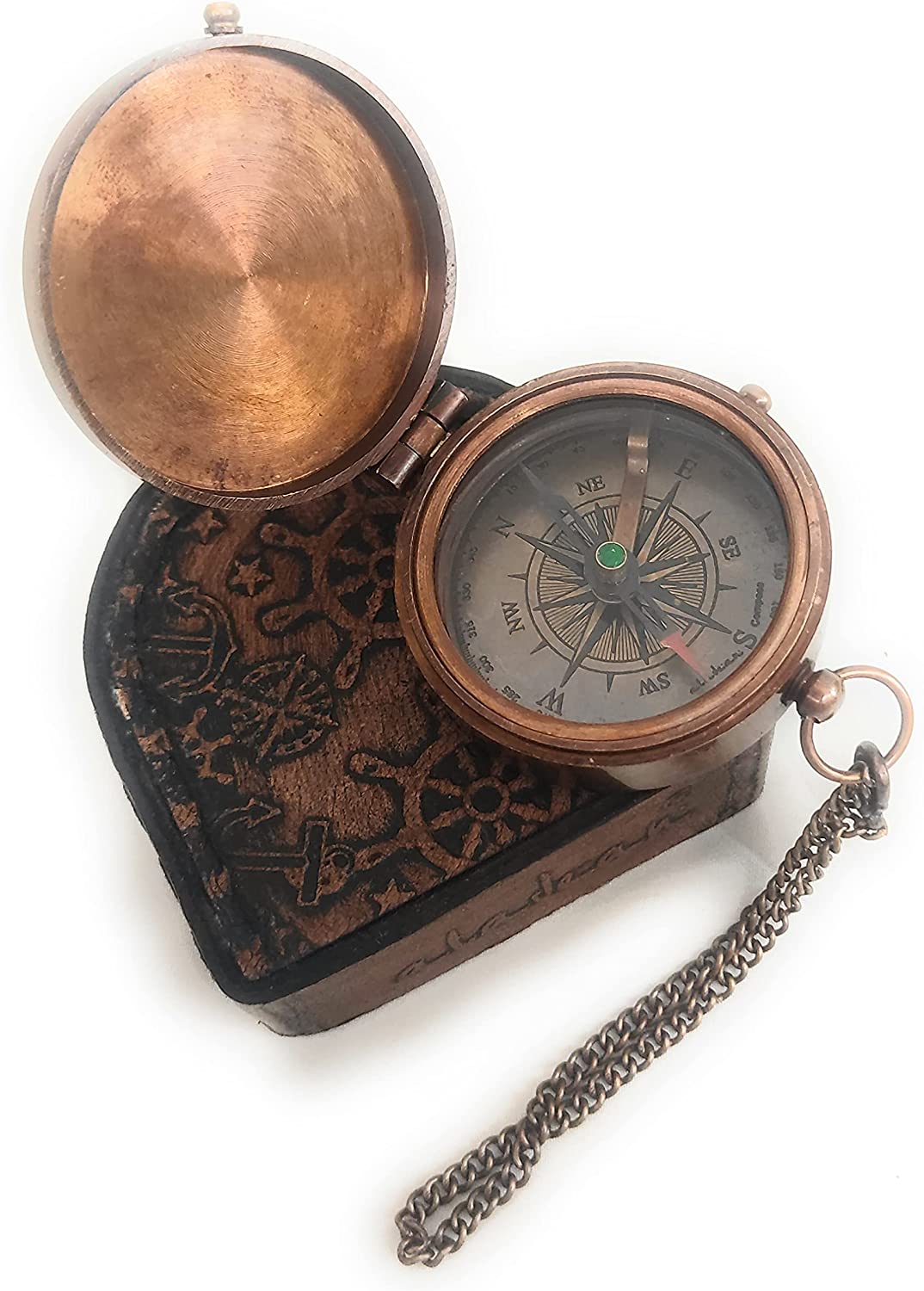 بوصلة نحاسية مقاس 5.08 سم تأتي في حقيبة جلدية مخيطة يدويًا، إبرة مغناطيسية تمنحك الاتجاه