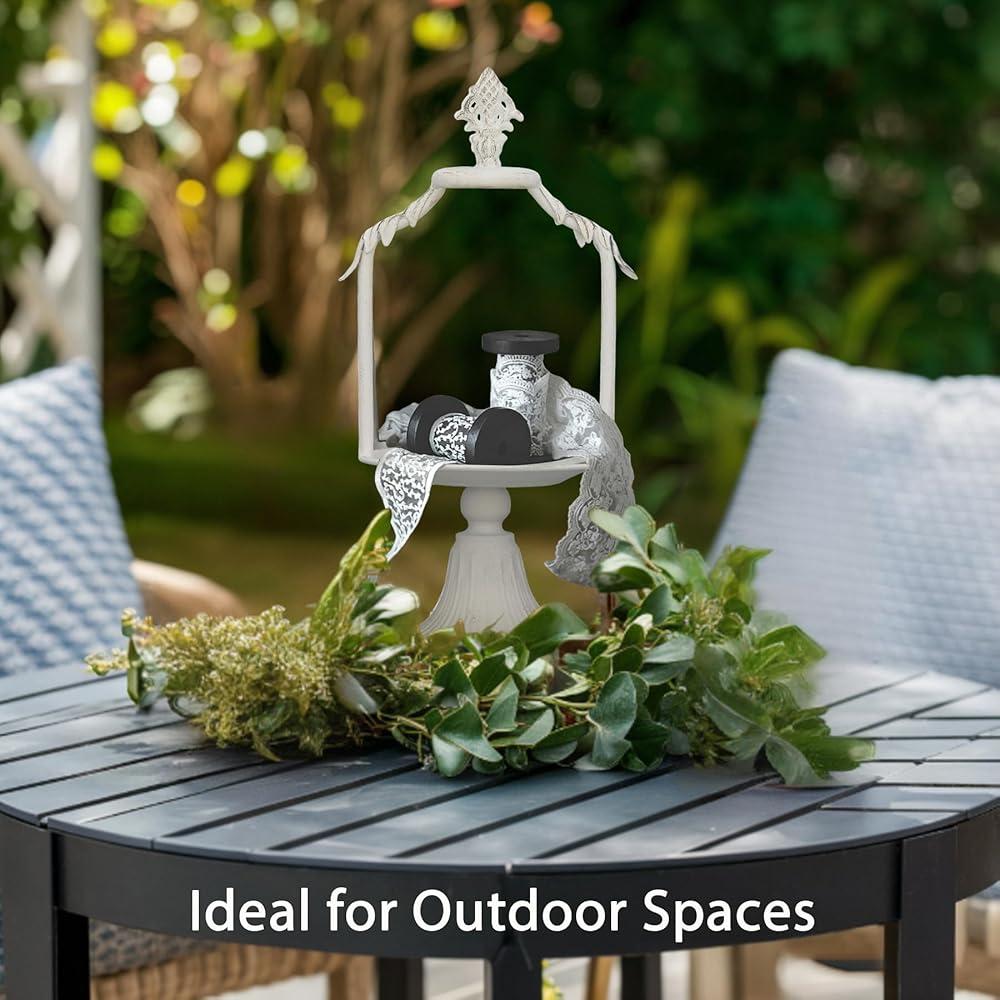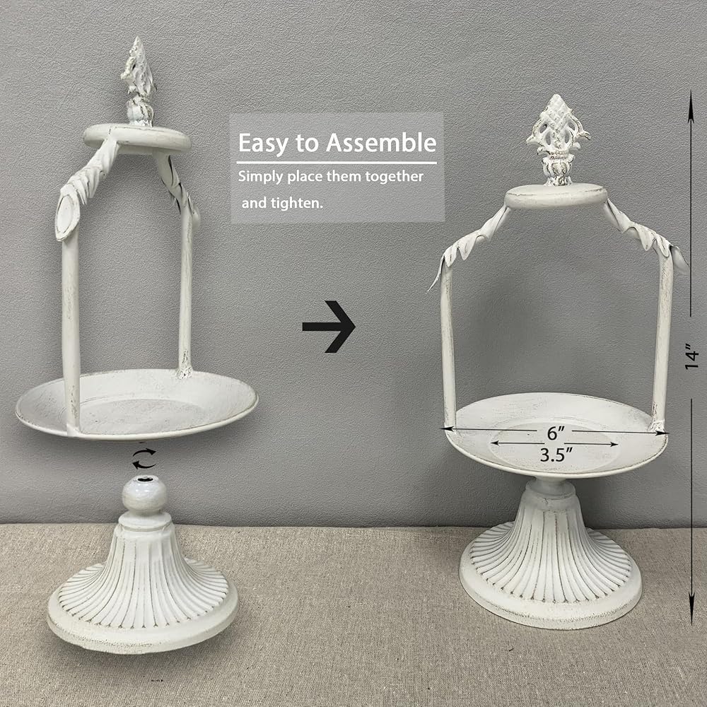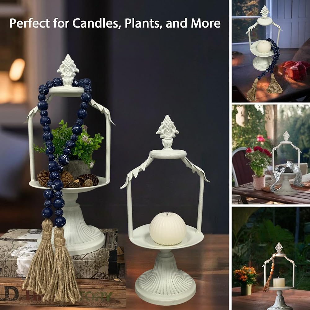 مجموعة من 2 فوانيس شموع بيضاء ريفية عتيقة - حوامل معدنية مزخرفة على شكل منزل مقاس 14 بوصة للشموع والنباتات وديكور المنزل
