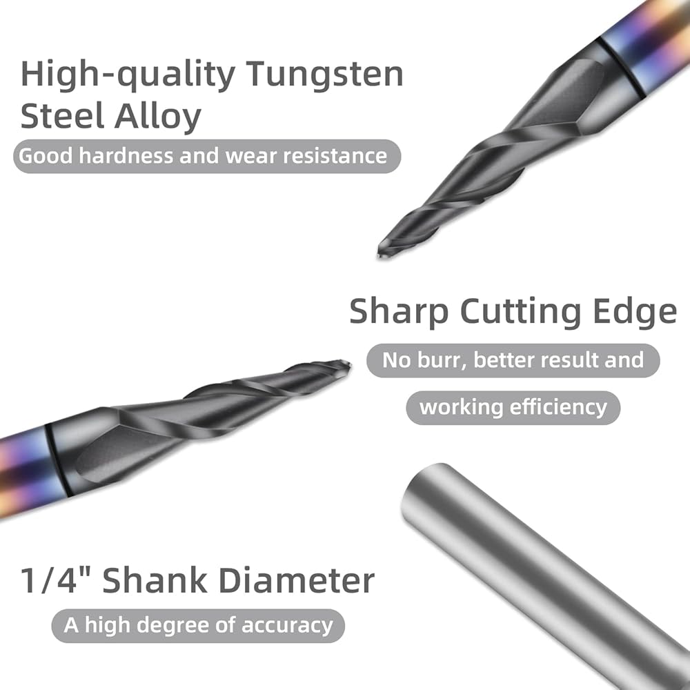 FoxAlien 1/4 "عرقوب مدبب الكرة نهاية مطحنة، 1.0mm قطع الشعاع مدبب CNC راوتر بت ل 3D الخشب نحت النجارة
