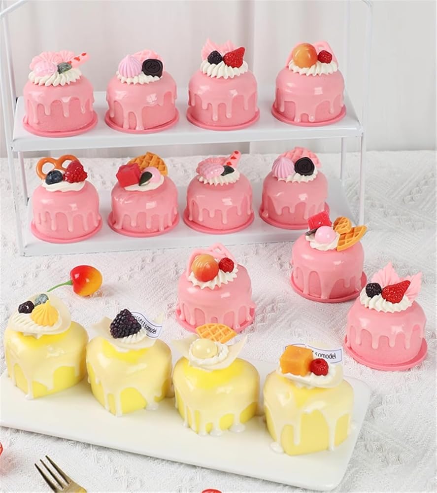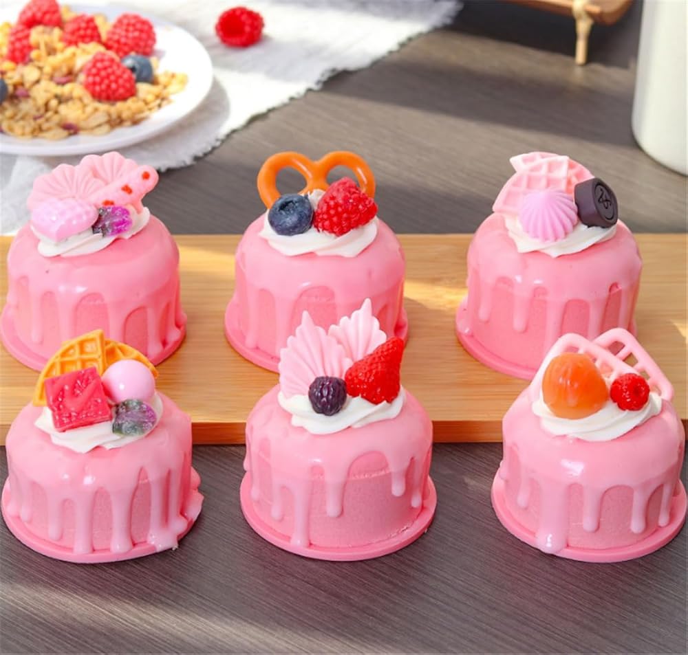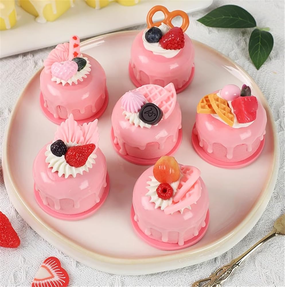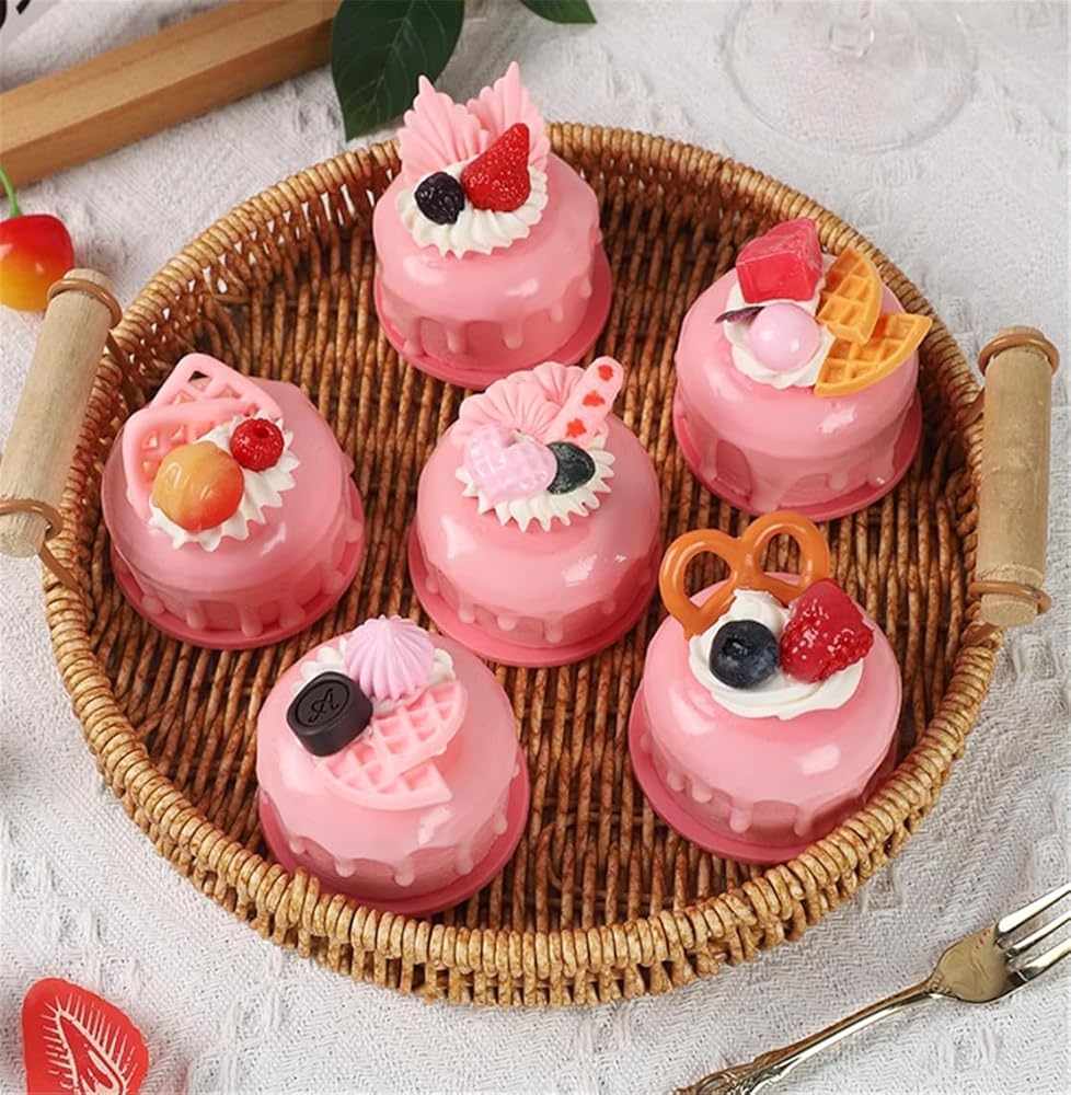 6 قطع من كعكة الفاكهة الاصطناعية نموذج كب كيك مزيف للتصوير الفوتوغرافي لتزيين حفلات المطبخ المنزلي (وردي)