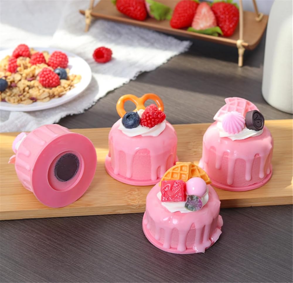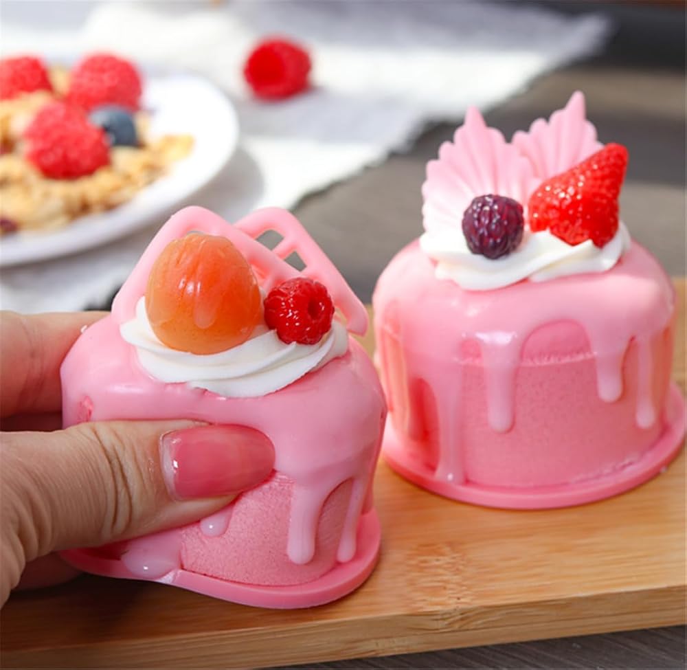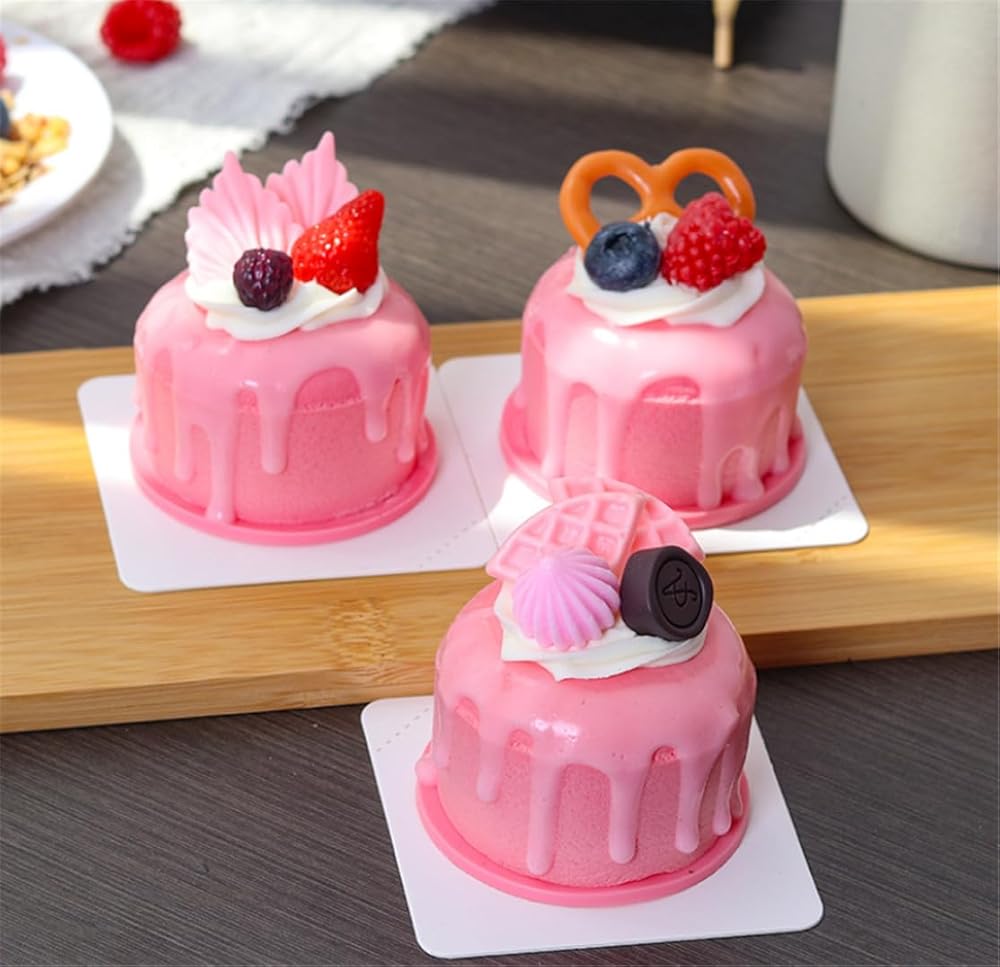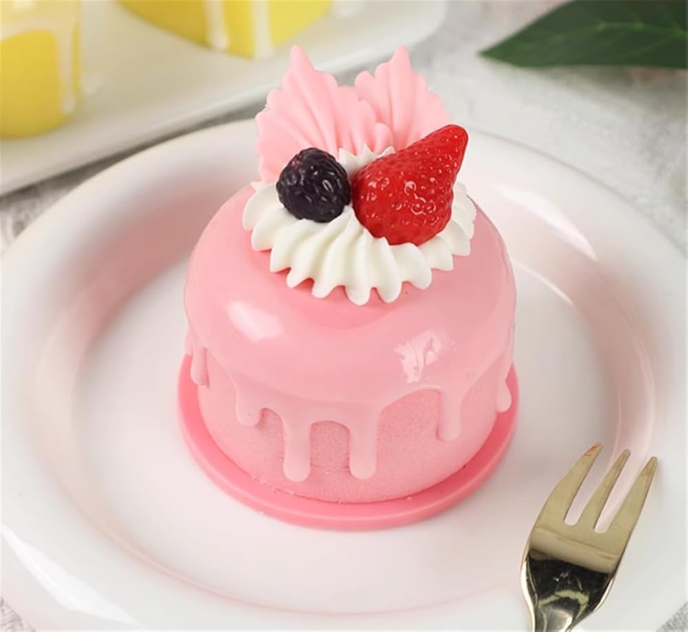6 قطع من كعكة الفاكهة الاصطناعية نموذج كب كيك مزيف للتصوير الفوتوغرافي لتزيين حفلات المطبخ المنزلي (وردي)