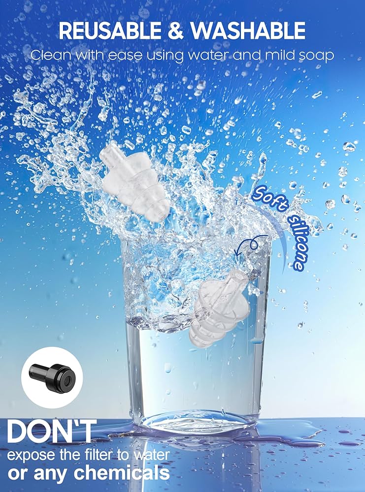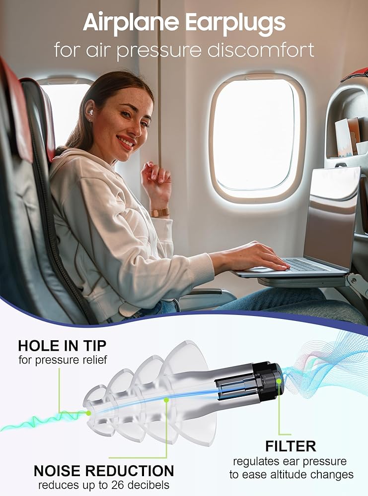 • [حماية ممتازة للسمع والأذن] يساعد الفلتر على تنظيم ضغط الهواء وتقليل الألم أثناء الإقلاع والهبوط. فهي لا تقلل بشكل فعال الضغط على طبلة الأذن أثناء الإقلاع والهبوط، ولكنها توفر أيضًا مستوى لائقًا من الحماية من الضوضاء تبلغ 26 ديسيبل. تصميم مريح ذو شفة من 4 طبقات لتقليل الضوضاء بشكل أفضل. يمكن أن تحمي سدادات الأذن سمعك من التعرض لمستويات الصوت الضارة.