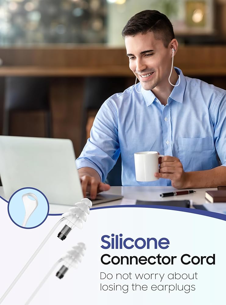 • [مريح ومحمول] يأتي مع زوجين من سدادات الأذن مع صندوق تخزين عالي الجودة وحلقة تسلق لإبقائهم معًا ونظيفين. تتضمن سلك موصل من السيليكون مما يجعل من السهل العثور عليها عند البحث في حقيبتك وتقليل احتمالية ضياع سدادات الأذن.