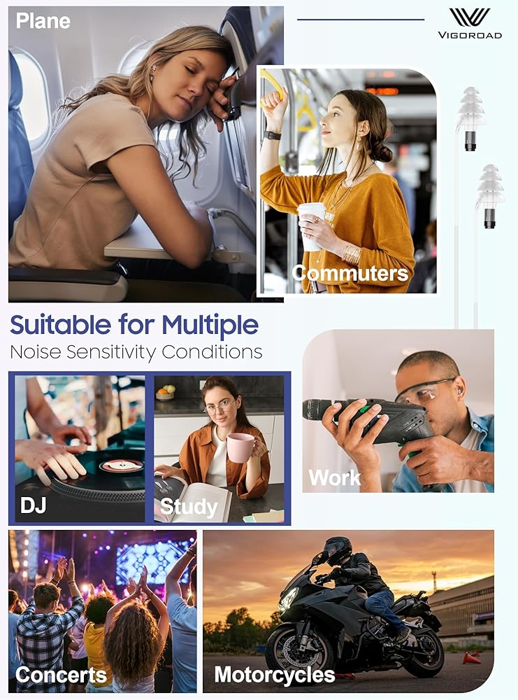 • [مناسبات متعددة] مثالي لحماية السمع في البيئات الصاخبة أو لضمان الصمت عند محاولة التركيز أو التركيز. مثالي للاستخدام في الطائرات والسفر والدراسة والدراجات النارية ودي جي والحفلات الموسيقية والبناء والعمل والاسترخاء وما إلى ذلك.
