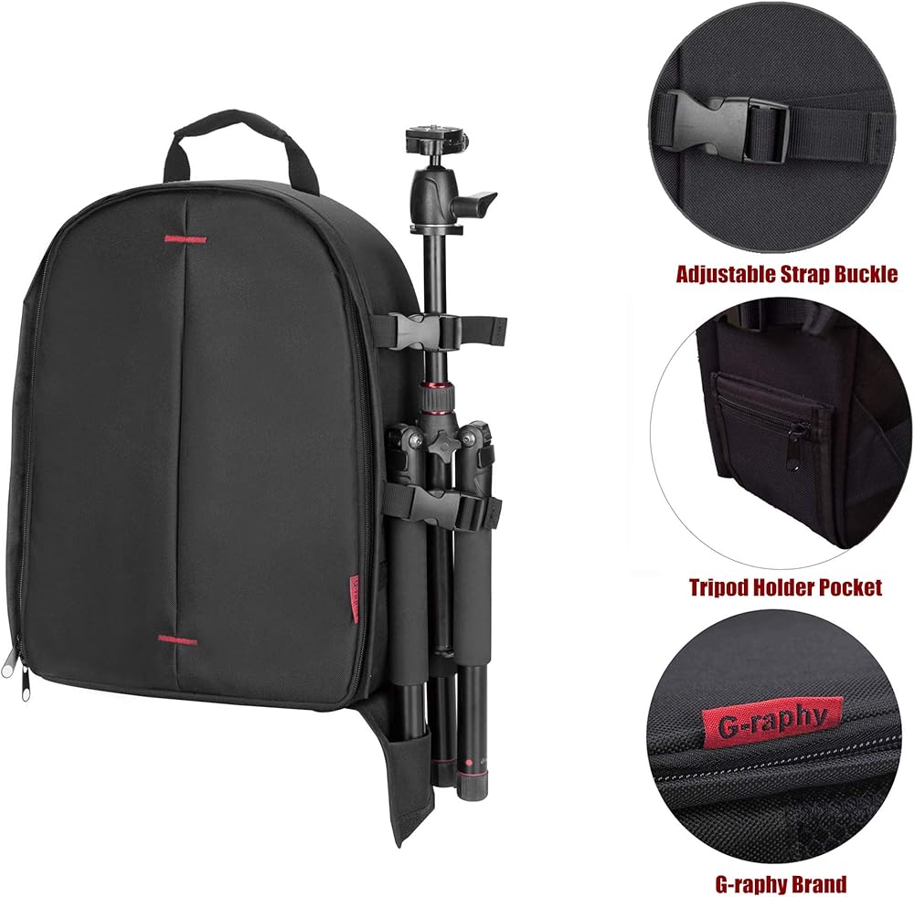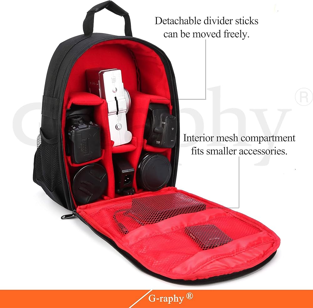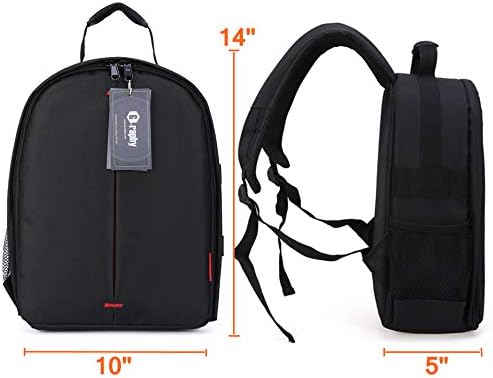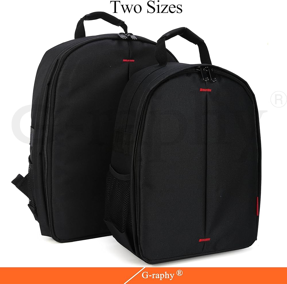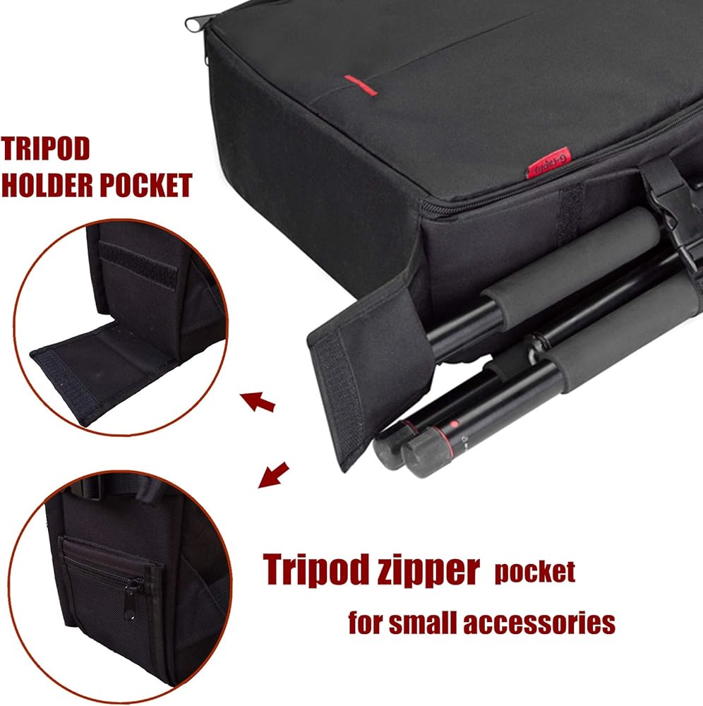 الأبعاد الخارجية: 35.56 سم × 25.4 سم × 12.7 سم. يحمل ويحمي كاميرا وعدسة DSLR، و3-4 عدسات إضافية، وفلاش مثبت على الحذاء، بالإضافة إلى حامل ثلاثي القوائم صغير الحجم أو حامل أحادي.