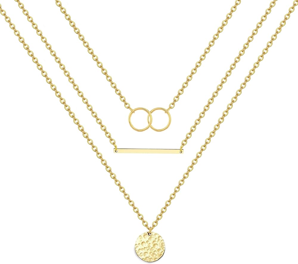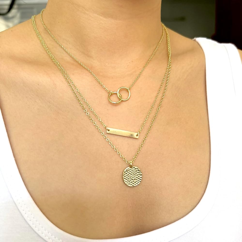 Gender: Women, Lady, Main Material: Copper Base ,14K Gold Plated, 3 Layered Pendant Necklaces in Together, Weight: 20g/Set.