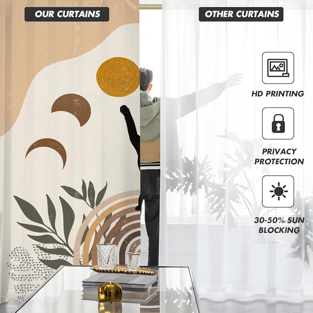 عملية - ستائر مطبوعة للمطبخ، الحمام، غرفة النوم، غرفة المعيشة، غرفة الطعام. يرجى ملاحظة أن هذه الستائر غير مبطنة، ويمكنها فقط حجب 30 إلى 50% من ضوء الشمس مع توفير الخصوصية.
