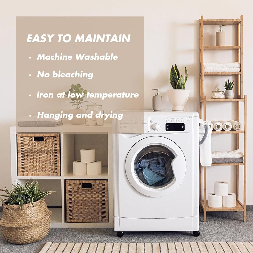 سهل التنظيف - يمكن غسله في الغسالة بالماء البارد. لا تستخدم المبيضات أو التجفيف بالمجفف.