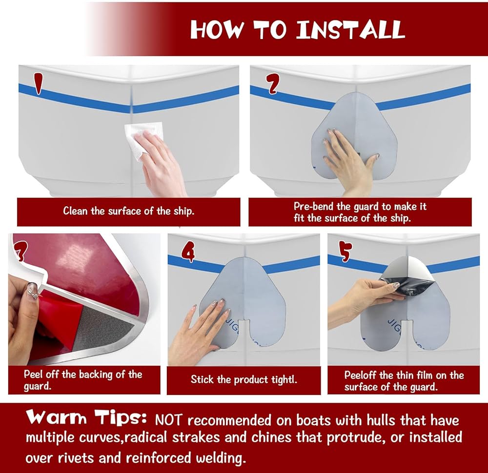 سهل التركيب: يوجد لاصق على الظهر، وهو في الواقع قوي جدًا عند ربطه بالقارب. أولاً، امسح سطح الموقع المستهدف وجففه، ثم قم بثني واقي قوس القارب ليناسب هيكلك، وقم بتقشير الطبقة الواقية الخلفية اللاصقة، ثم قم بربطه بالموقع المستهدف، وأخيرًا قم بتقشير الطبقة الرقيقة على سطح الحارس واضغط عليه لبضع ثوان، لا حاجة لأي أدوات أخرى.