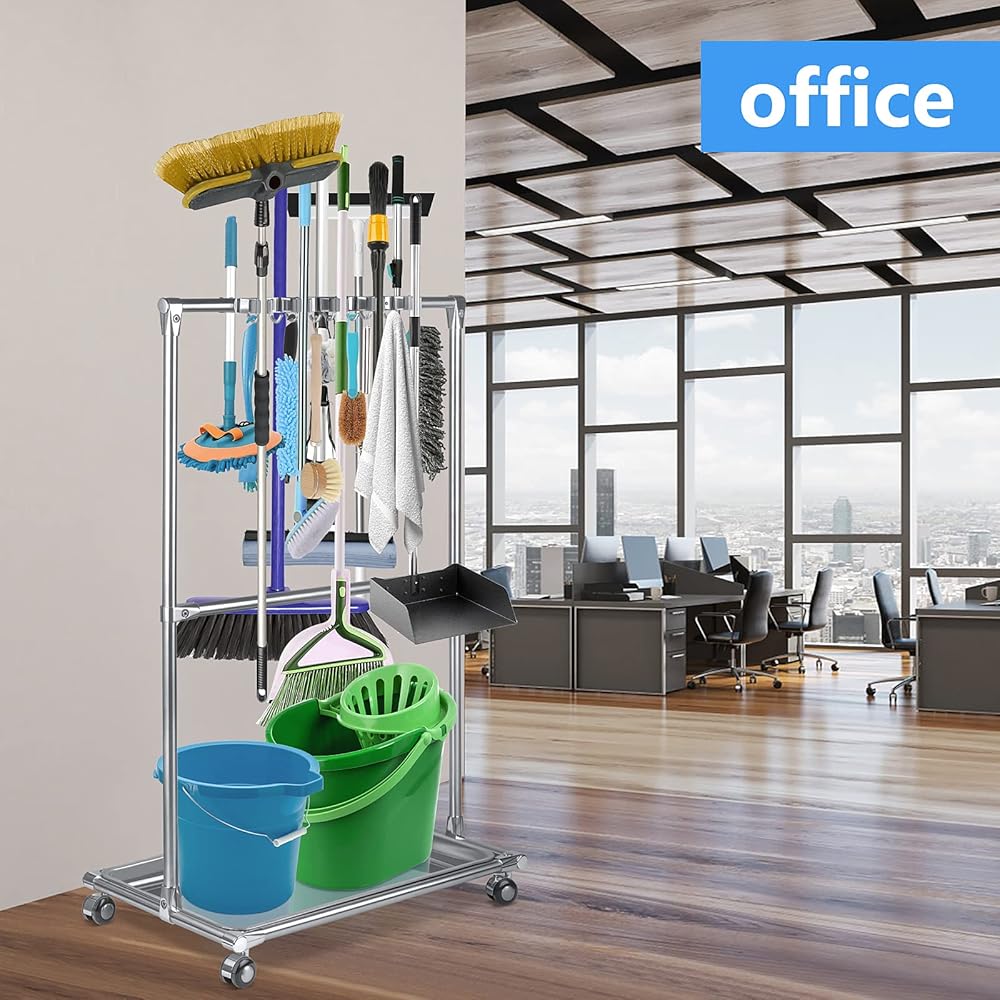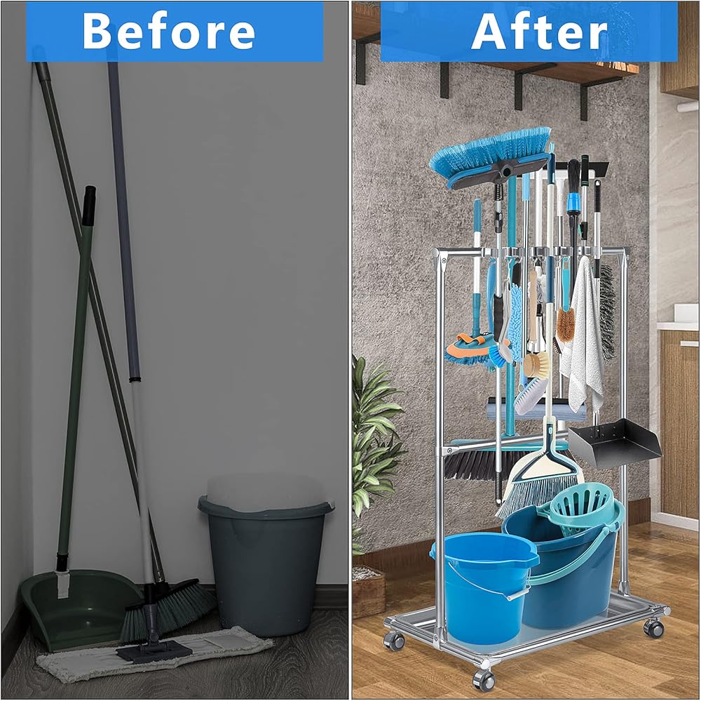 منظم حامل المكنسة، خزانة متحركة، خزانة تخزين، رف ممسحة، لوازم التنظيف الدائمة على الأرض، عربة أدوات للحديقة، المرآب، المدارس، الفنادق، المستشفيات، المصانع، الشركات العقارية، المطاعم (10 رفوف)