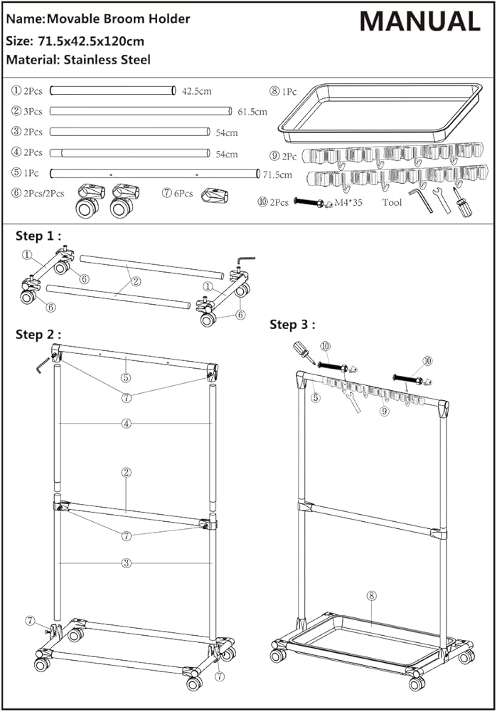 - سعة عالية: مع 10 رفوف و8 خطافات لتنظيم المكنسة، يوجد إجمالي 18 وضعًا لترتيب المكنسة والممسحة والمشط والأدوات والمزيد