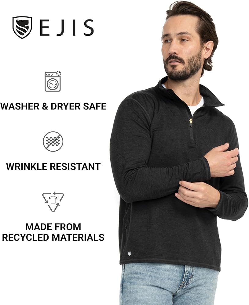 خزانة ملابس أساسية متعددة الاستخدامات - سترة Ejis Conquest الرياضية بنصف سحاب هي أكثر من مجرد ملابس؛ إنه بيان للراحة والتنوع. التصميم الفاخر، المكتمل بياقة تدفئة الرقبة، يجعل هذا السويت شيرت الرجالي المزود بسحاب إضافة مثالية لخزانة ملابسك، مما يضمن لك الشعور بأفضل ما لديك كل يوم.