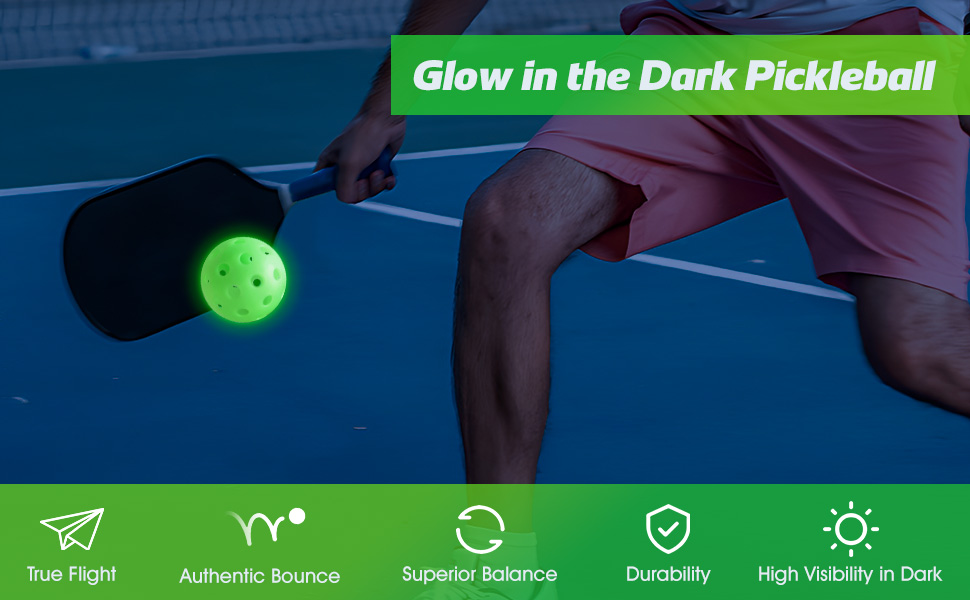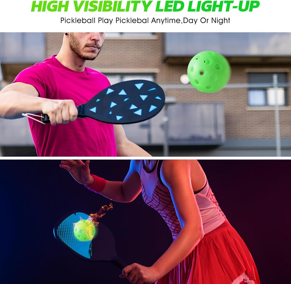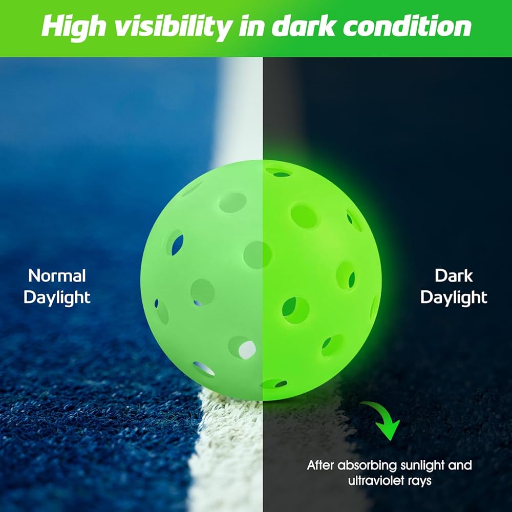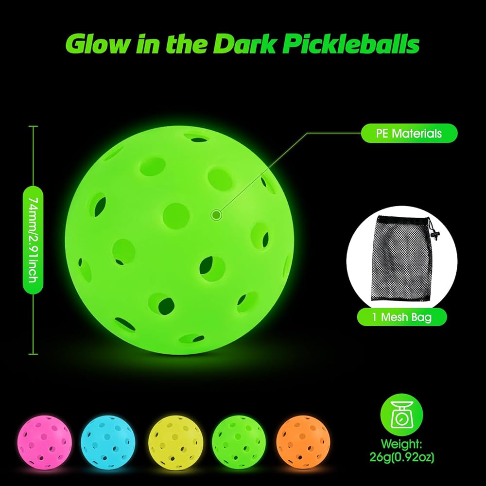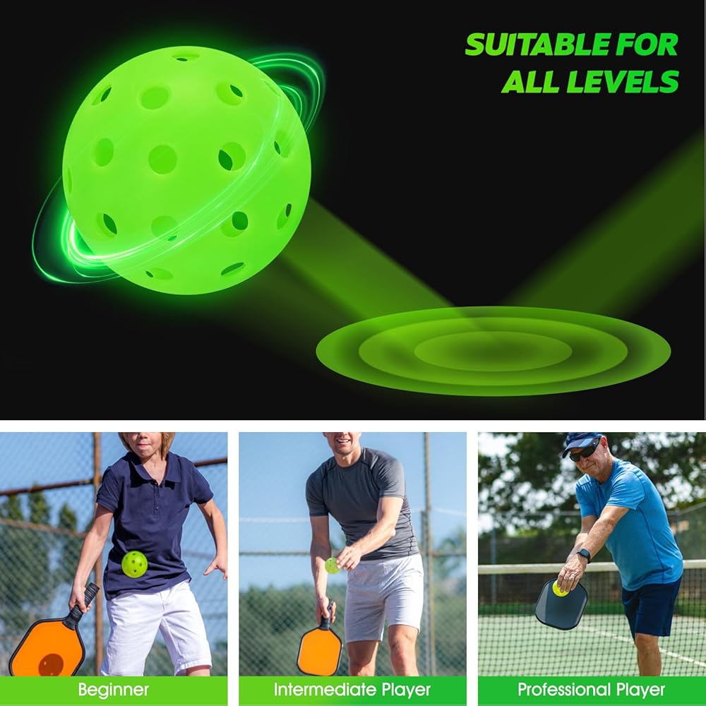 【الرؤية في الليل】تحتوي كرة البيكل المضيئة على 5 ألوان زاهية للاختيار منها، يمكنك بسهولة تحديد موضع الكرة حتى في البيئات ذات الإضاءة الخافتة، مما يضمن استمرارية اللعبة وسلامة اللاعب.