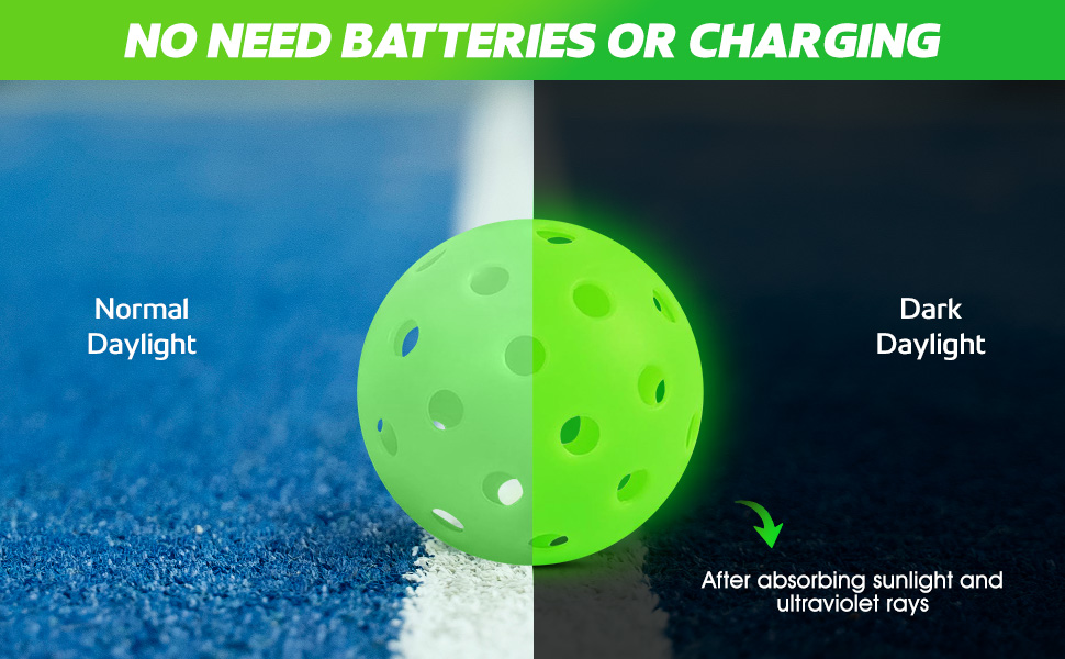 وظيفة مضيئة: تنبعث كرات كرة المخلل المتوهجة في الظلام ضوءًا ناعمًا في الليل بعد تعرضها لأشعة الشمس أو الأشعة فوق البنفسجية خلال النهار. لا تحتاج إلى بطاريات أو شحن، لذلك يمكنك الاستمتاع باللعبة ليلاً ونهارًا