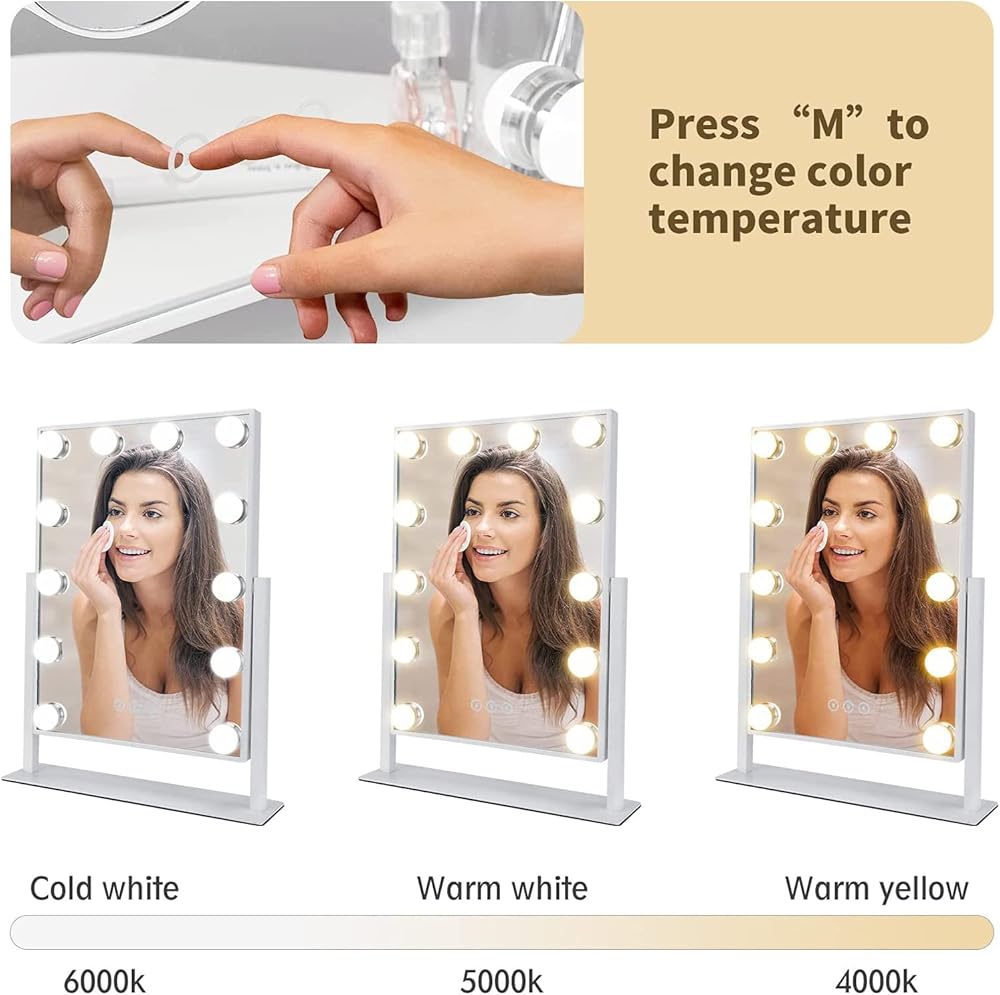 【هدية رائعة】تم تصميم مرآة الزينة الكبيرة هذه خصيصًا لسطح الطاولة، حيث ستلهمك الجلوس أمام مرآة الزينة هوليوود هذه المزودة بالأضواء لتجربة إطلالات مكياج وتقنيات مكياج جديدة. مستشعر اللمس يجعل من السهل تغيير لون الضوء وضبط السطوع. يمكن تدويرها 360 درجة، وتثبيتها على زاوية الرؤية المرغوبة. يمنح الغرفة ضوءًا ساطعًا أو ضوءًا ناعمًا رقيقًا، مثالي لأي فتاة كهدية لعيد الحب أو عيد الميلاد أو عيد الميلاد!