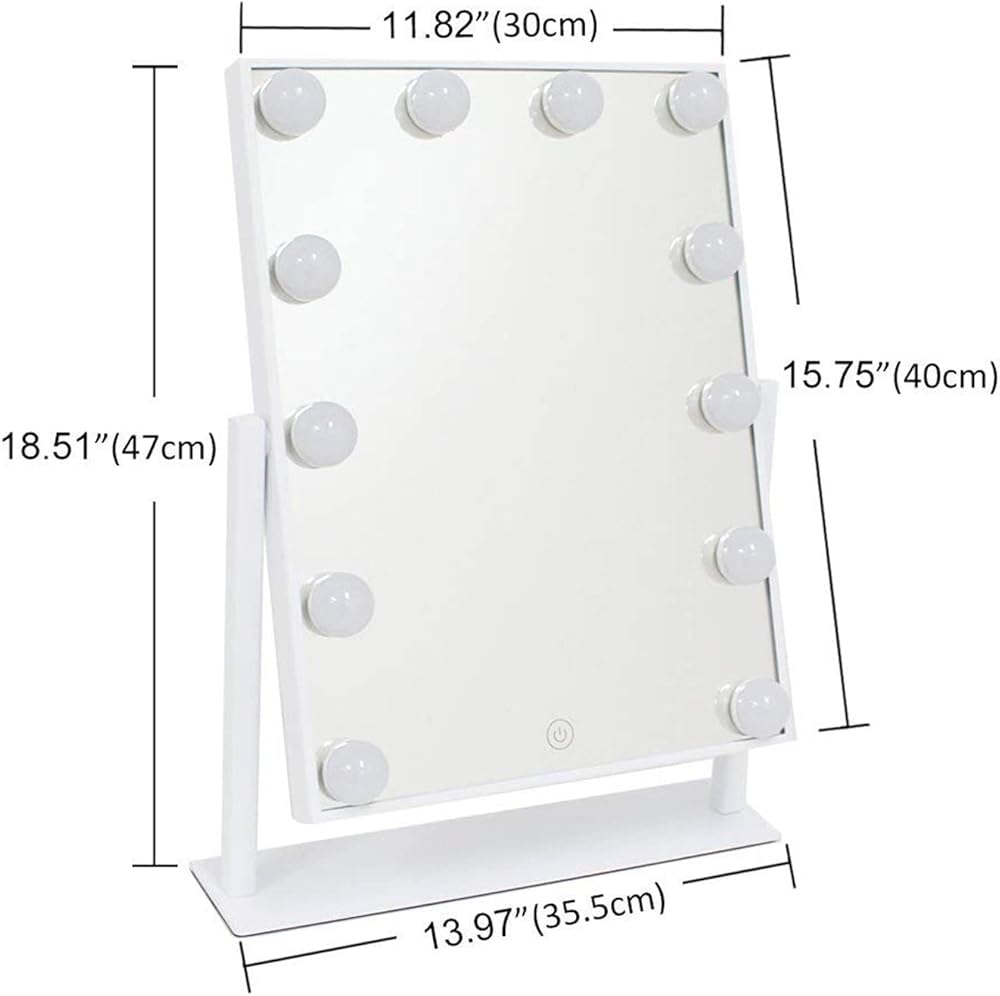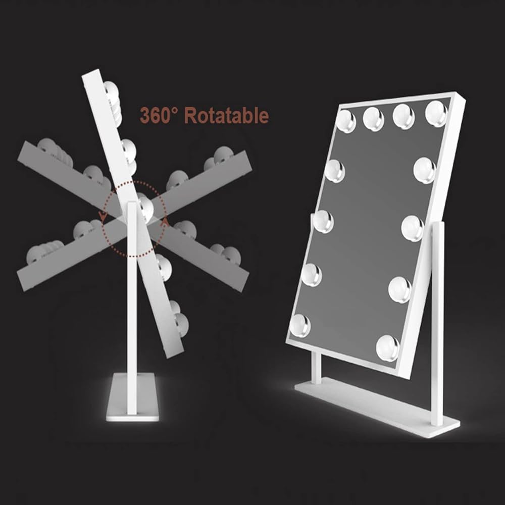 مرآة الغرور LED مع أضواء مرآة مكياج هوليوود المضيئة للمكتب، مرآة ذكية مضاءة مع أضواء تعمل باللمس، مرآة مكياج شخصية قابلة للتعتيم بثلاثة ألوان مع 12 لمبة لغرفة النوم تدور 360 درجة