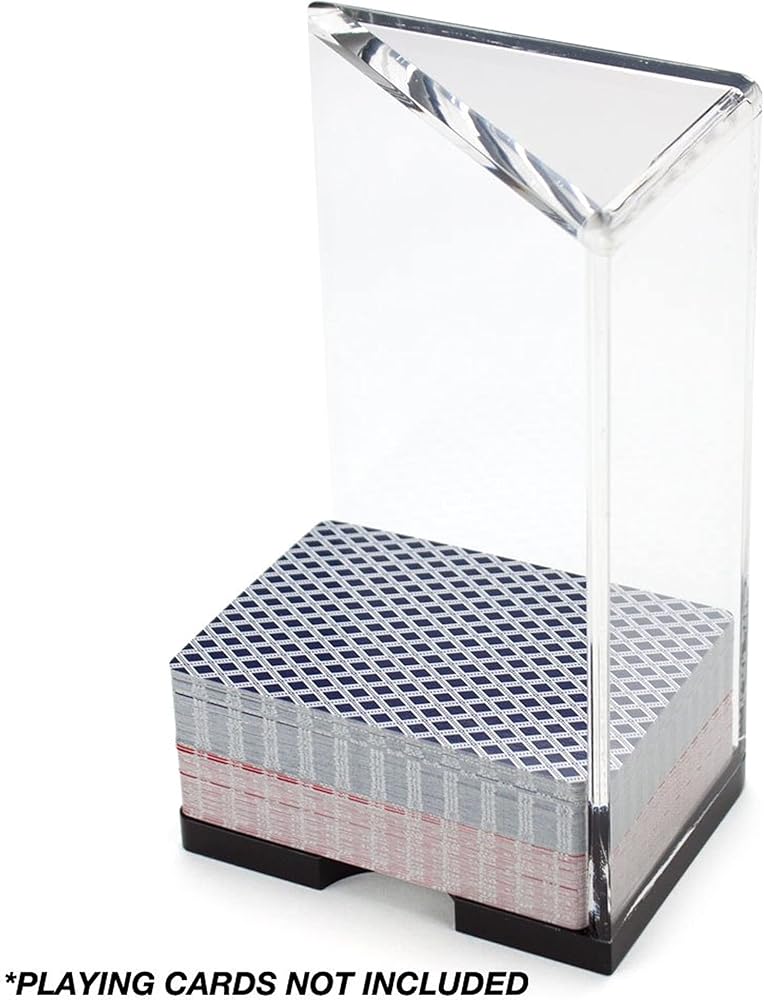This Casino Grade Discard Tray is a must for any black jack player. This heavy Duty Acrylic Black Jack discard tray is perfect for dealing black jack. This Tray holds 8 decks easily. The cards are held in place by the 2 walls and stack until your dealing shoe is empty.
