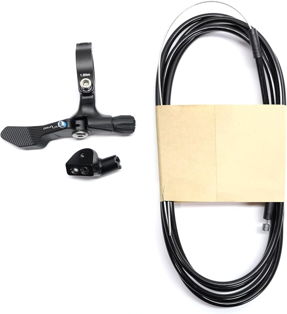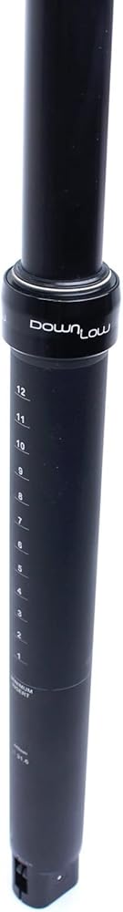 The Cannondale DownLow Dropper Seatpost is an Air/Hydraulic Unit with 150mm of travel. The diameter is 31.6mm with zero offset and is compatible with carbon and alloy seat rails. The alloy construction has key slot bushings and wiper seals. There is internal routing and comes with a cable remote with cable anchor at lever. There are additional remotes sold separately. Seatpost weighs 570g while the remote weighs 55g each. Available in 340mm, 390mm, and 440mm lengths.