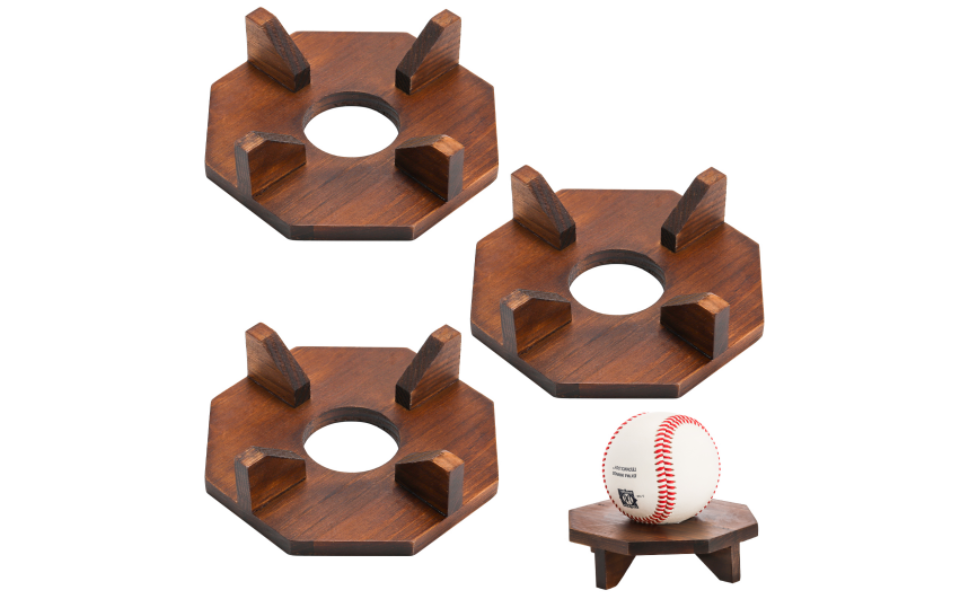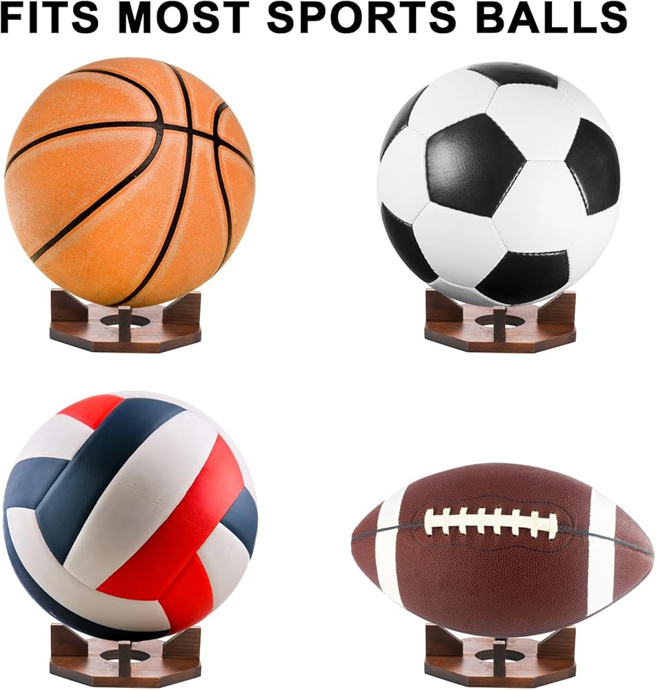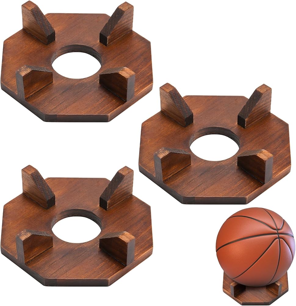 Lawei 3 حزمة حامل الكرة الخشبية حامل، حامل عرض الكرة الصغيرة لكرة القدم كرة السلة كرة القدم الكرة الطائرة الرجبي البولينج، رف عرض تخزين الكرة الرياضية، حالات عرض تذكارات توقيع الكأس