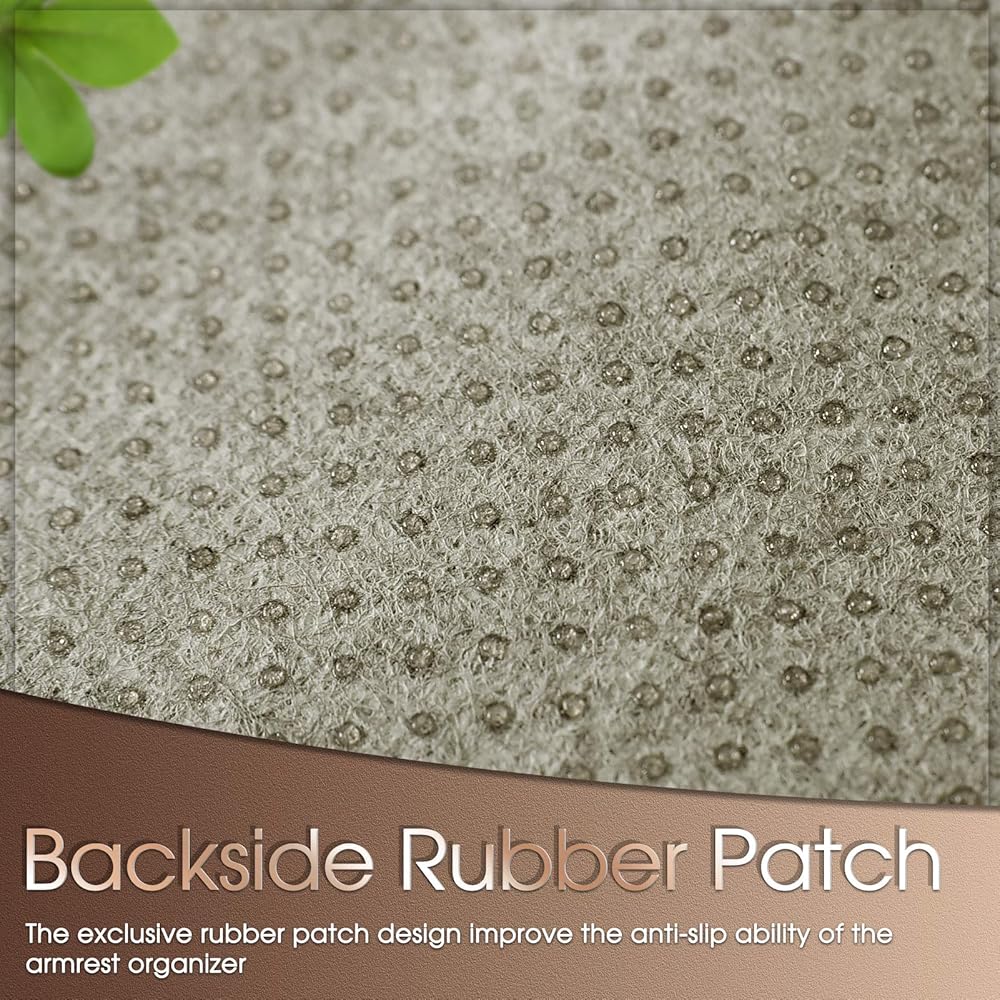 • 【جيوب يدوية】: 5 جيوب لمنظم مسند الذراعين مصممة لاحتياجاتك. يمكنك وضع الصحف والمجلات وأجهزة iPad والكمبيوتر اللوحي في الجيوب الأكبر، وأجهزة التحكم عن بعد والنظارات والهواتف المحمولة وغيرها من الأجهزة المحمولة في الجيوب الأربعة القياسية، وإبقائها في متناول يديك عندما تحتاج إليها.