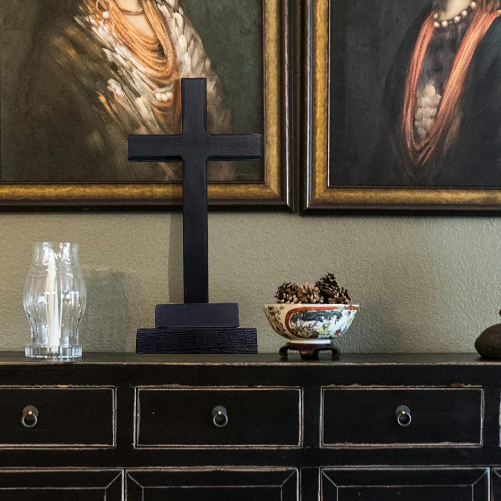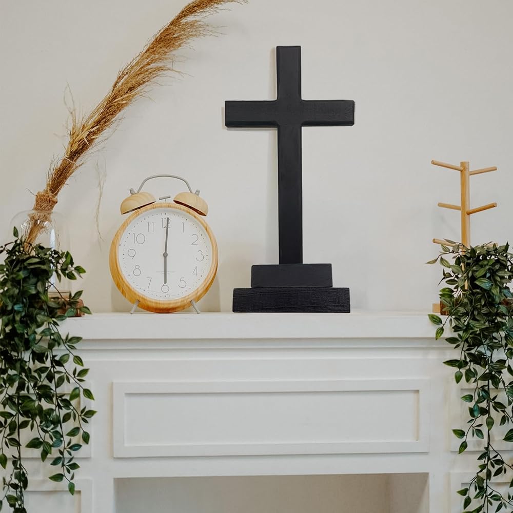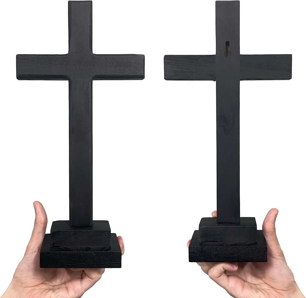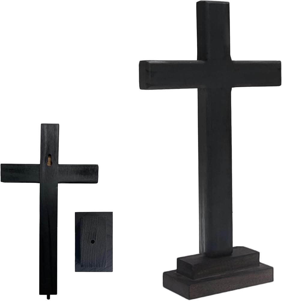 LBLNUGURI صليب خشبي أسود مع قاعدة يسوع المسيح صليب سطح الطاولة ديكور سطح المكتب خشبي أسود مقدس يسوع صليب كاثوليكي صليب يسوع المسيح صليب المنزل الزفاف في الهواء الطلق