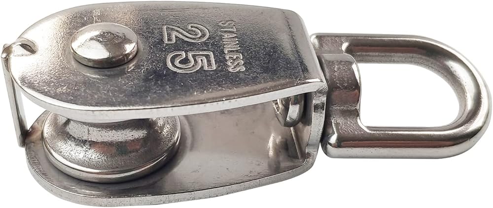 【Packages】: 2x M25 stainless steel single pulley, 2x M6 stainless steel spring snap hook.1x 66ft Length Nylon Rope(width:6mm)