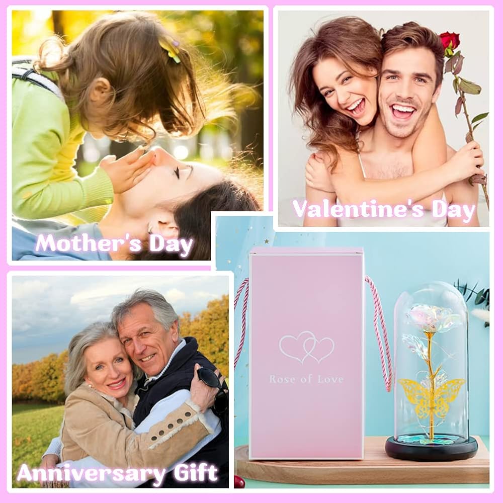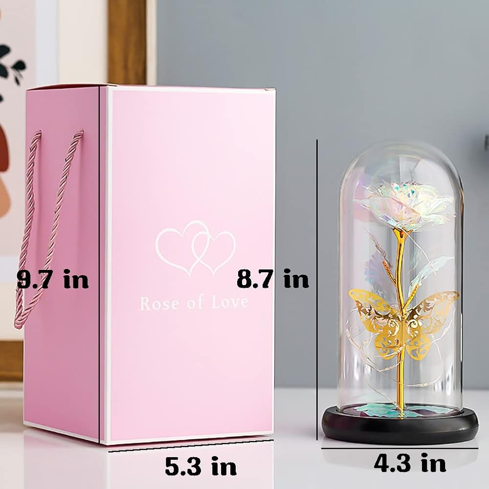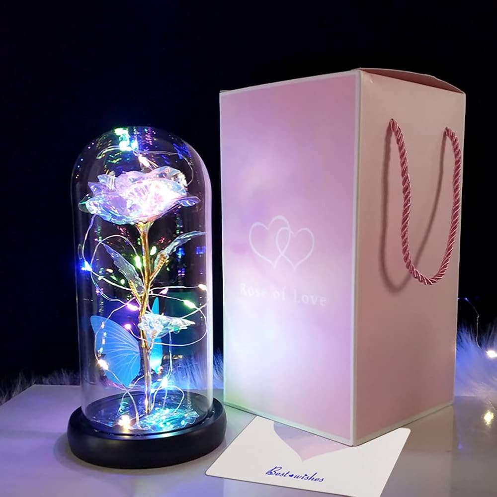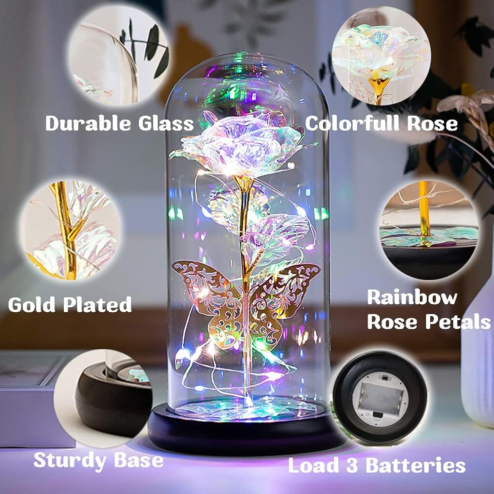 LED Rose for Mothers Day: LED rose has a unique warm lighting design. Powered by 3 AAA power(not included),led strip light bright colorful lighting. Rose and butterfly are attractive, beautiful lights and nicely presented. Great love gift for romantic dinner, great way to say I love you. Best Mother's Day gift for women who has everything.