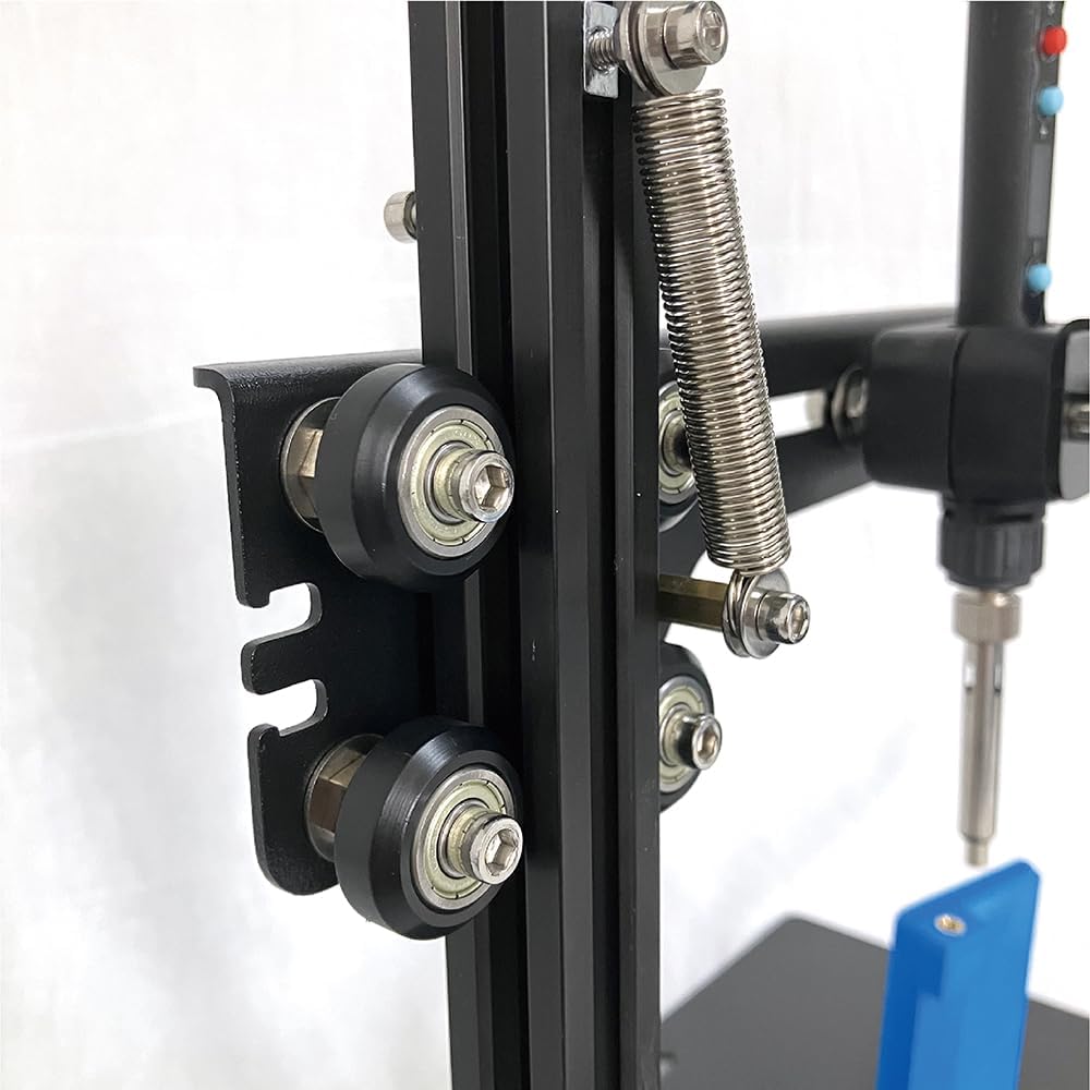 【مكواة لحام قابلة للتعديل】مكواة اللحام تتحرك بشكل مريح، يمكنك فقط ضبط البكرة. يمكن استخدام زنبرك التوتر المعدني بشكل متكرر دون تشوه، ومن الأسهل ضبط ارتفاع الإدخال عن طريق شد الصمولة يدويًا.