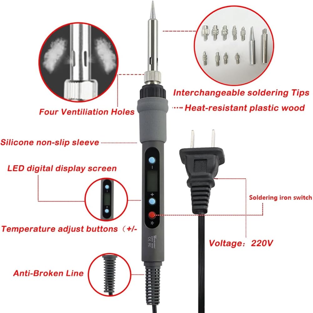 【مكواة لحام رقمية】تسخن المكواة الكهربائية بقدرة 60 وات بسرعة مع درجة حرارة أساسية من السيراميك: 180 درجة مئوية - 500 درجة مئوية، متينة للغاية، غير عرضة للأكسدة، تسخن بسرعة ولكن يمكن التحكم فيها.