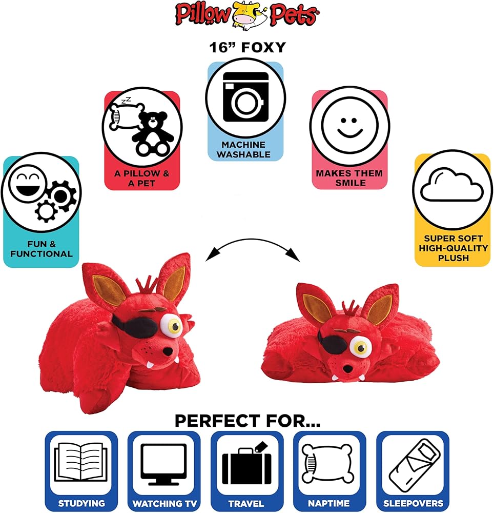 Pillow Pets and Striker teamed up to bring Foxy from Five Nights at Freddy's into your home as a soft, cozy plush form that everyone can snuggle up with and enjoy. Team up with this cool character for fun, and then curl up with this cool character at bedtime - because gamers need sleep too!