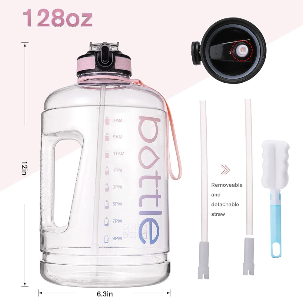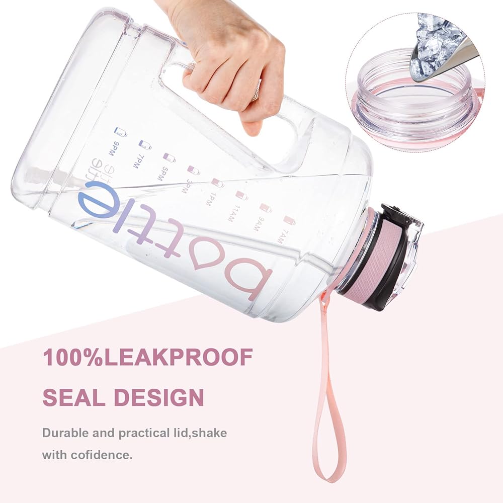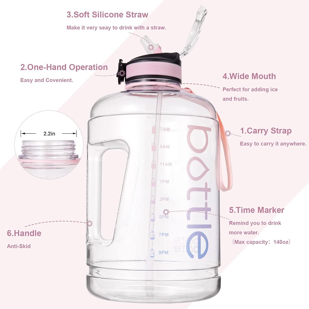【خفيفة الوزن وفم عريض】: مصنوعة من بلاستيك عالي الجودة مانع للتسرب، زجاجة المياه هذه هي رفيق رائع لك في شرب الماء اليومي. زجاجة المياه خفيفة الوزن ومتينة للاستخدام. زجاجة مياه واسعة الفم سهلة الملء بمكعبات الثلج. سوف تحصل على فرشاة لتنظيف الغطاء، يرجى تنظيف الزجاجة بصودا الخبز والخل.