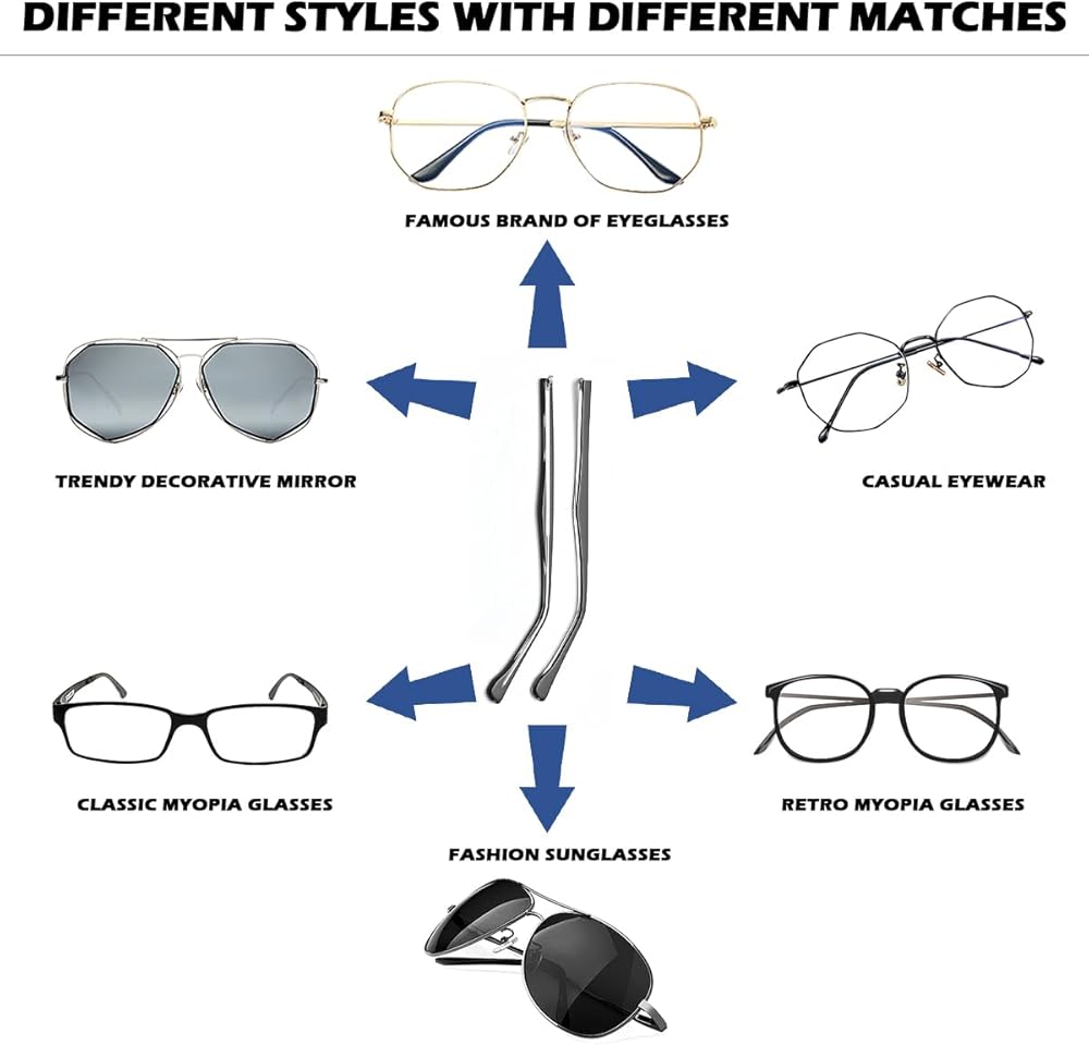 Wide Range of Application: The glasses replacement arm is suitable for most glasses, such as sunglasses, presbyopic glasses, nearsighted glasses, etc. (Note: Please read the picture of the size at the end of the temples before purchasing to confirm if it fits your glasses).