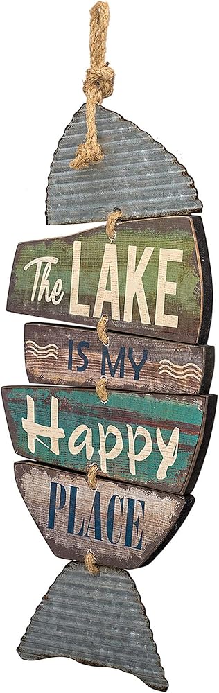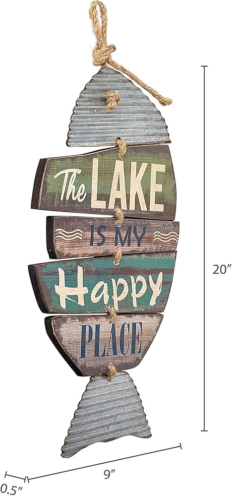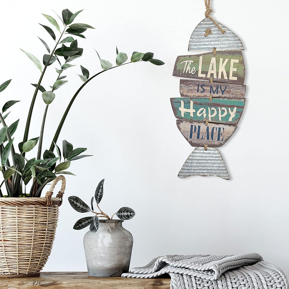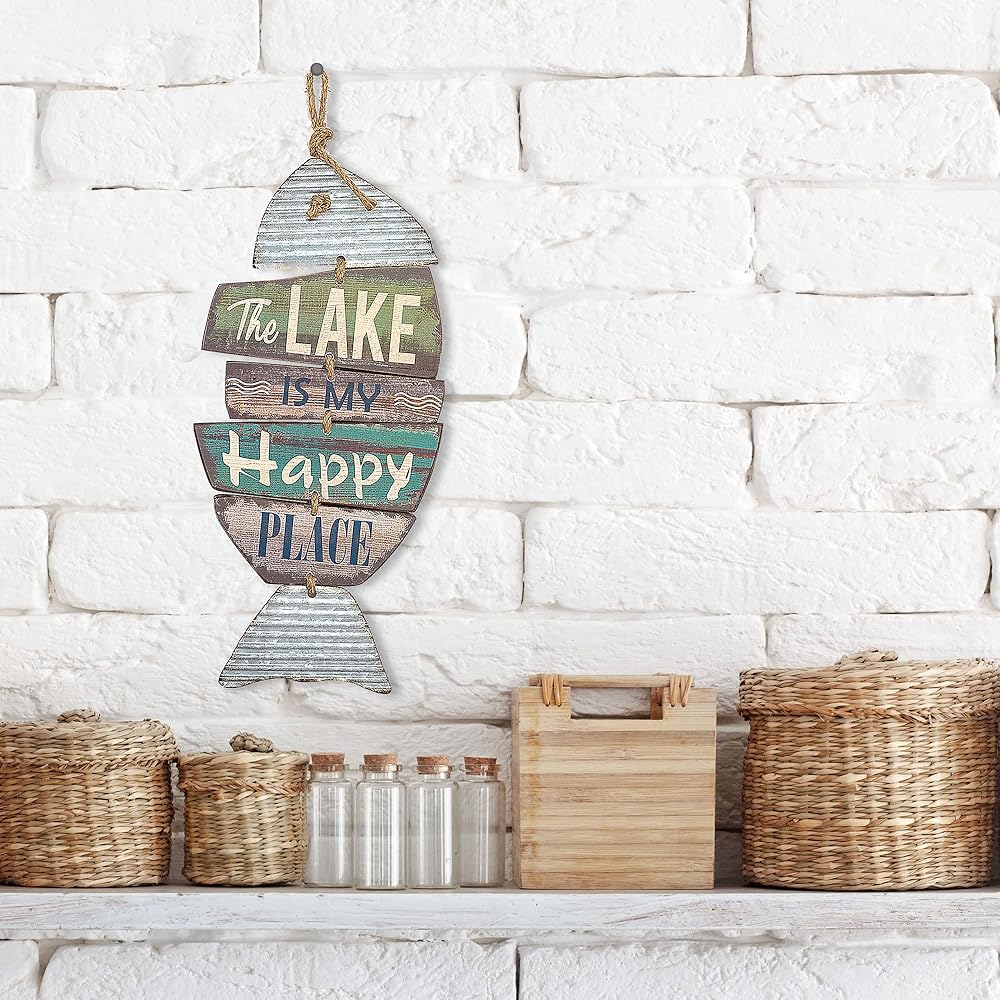 ديكور البحيرة المعلقة - يأتي ديكور منزل البحيرة هذا الخاص بعلامة البحيرة المنزلية مزودًا بشماعة حبل بحيث يكون جاهزًا للتعليق على الحائط.