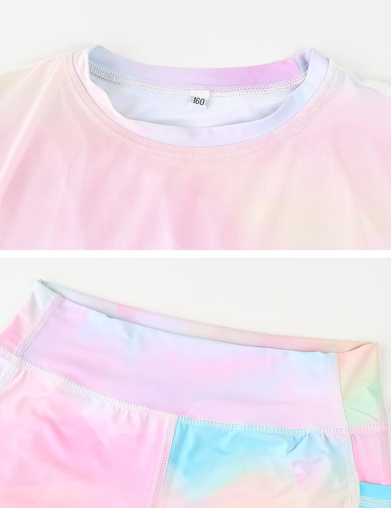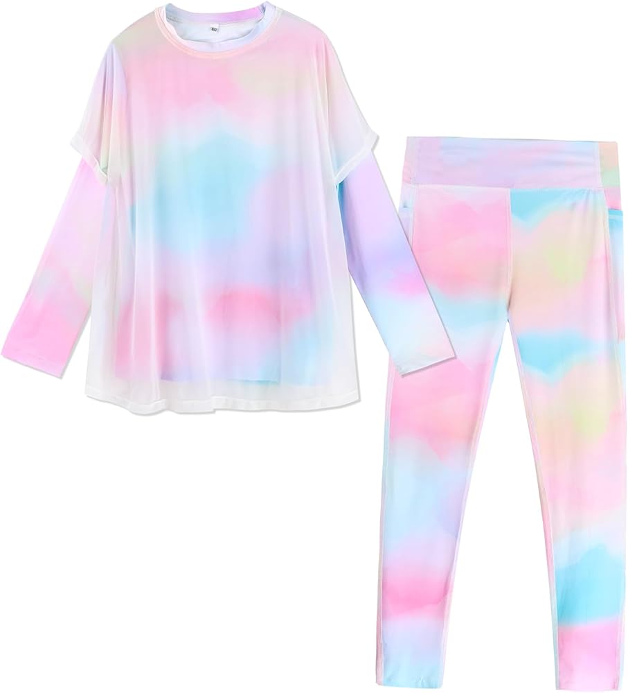 المزايا: ملابس نشطة للفتيات مكونة من قطعتين، ألوان نابضة بالحياة. سويت شيرت لطيف مكون من قطعتين بألوان قوس قزح، بلوفر بغطاء للرأس، حزام خصر مطاطي مصمم سهل الارتداء والخلع.