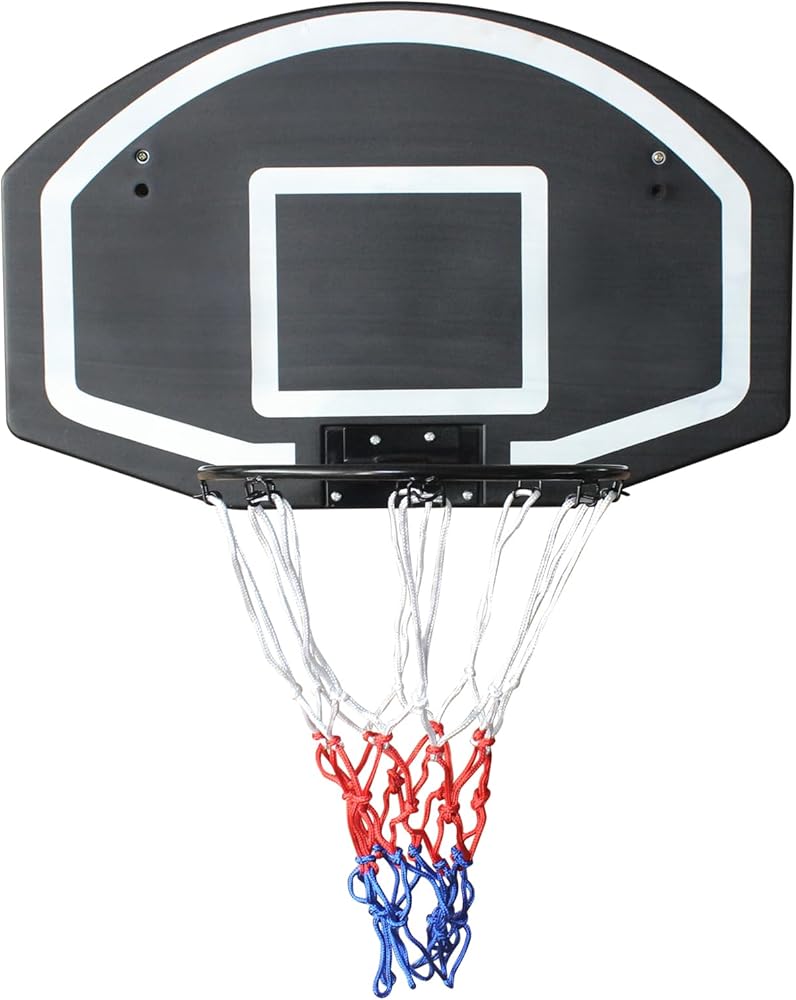 لعبة كرة السلة للاستخدام الداخلي/الخارجي، حلقة كرة سلة مثبتة على الحائط، لوحة خلفية كبيرة مقاس 28.5 بوصة × 18 بوصة، لوحة خلفية مقاومة للكسر من البولي إيثيلين، باللون الأسود