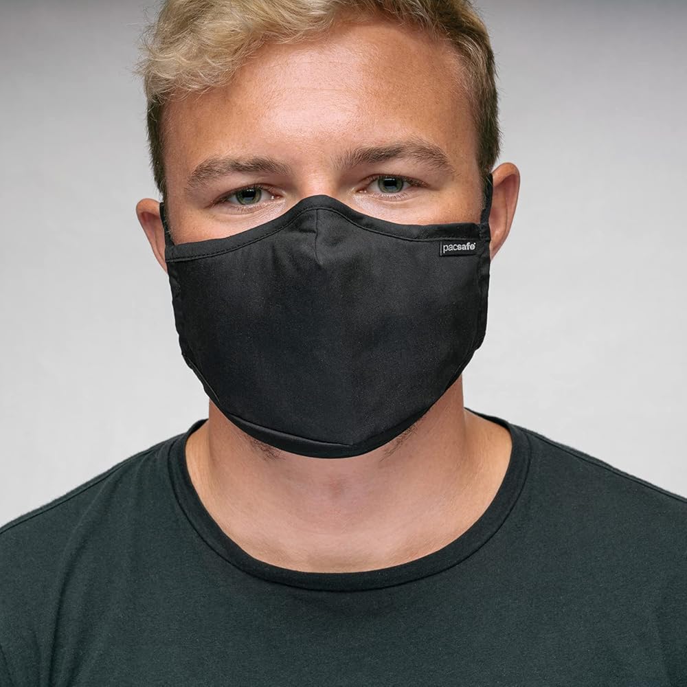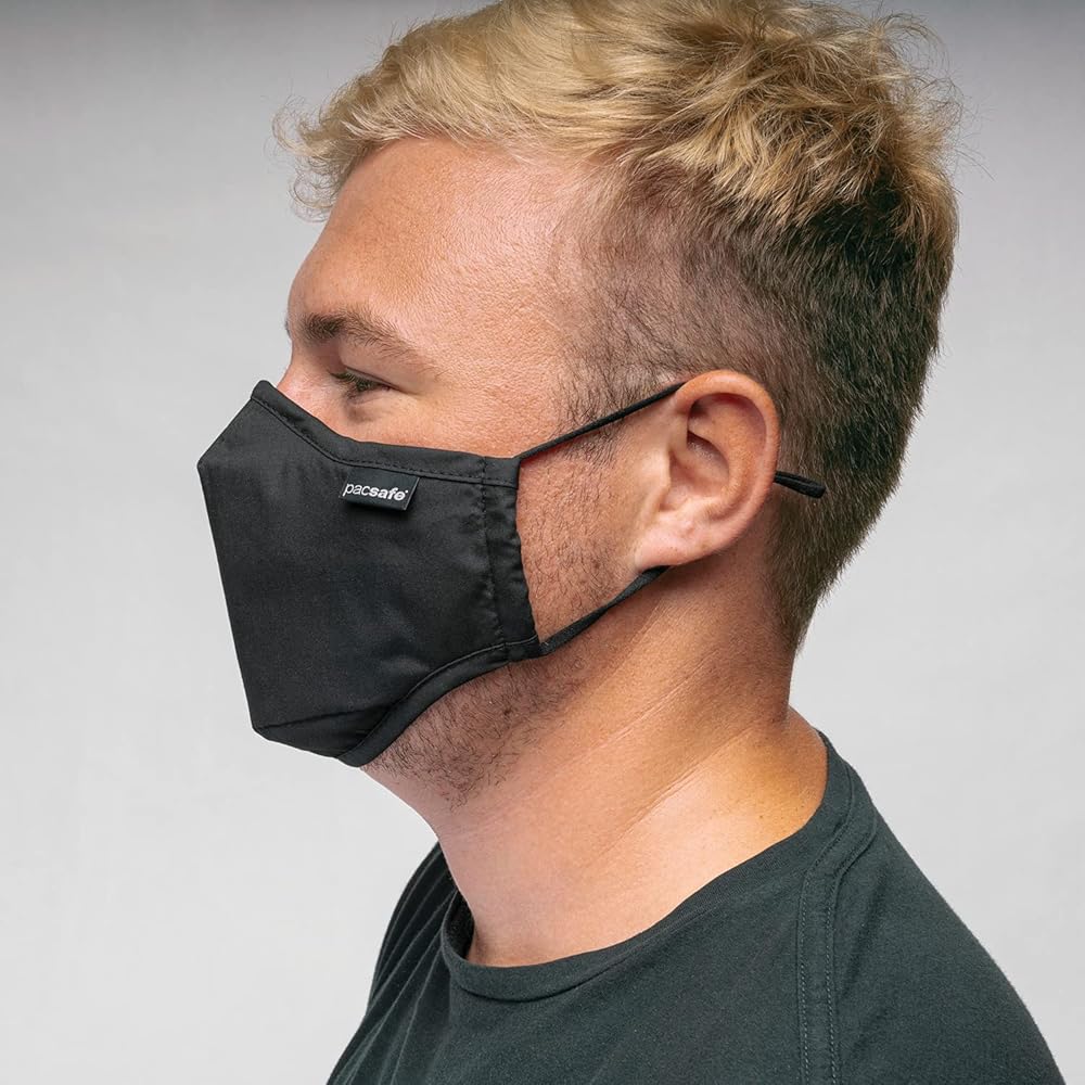 Pacsafe 3D Face Mask is a 3-layer barrier against airborne particles, and has a built in pocket that fits standard PM2.5 filters (filters not included). The mask is made from 100% cotton which makes it machine washable at 60°C. The 3D shape gives the mask a snug and breathable fit, supported with elastic and adjustable ear loops and a comfortable neck clip to offload stress on the ears for prolonged use. Packed vacuum sealed for sanitation.