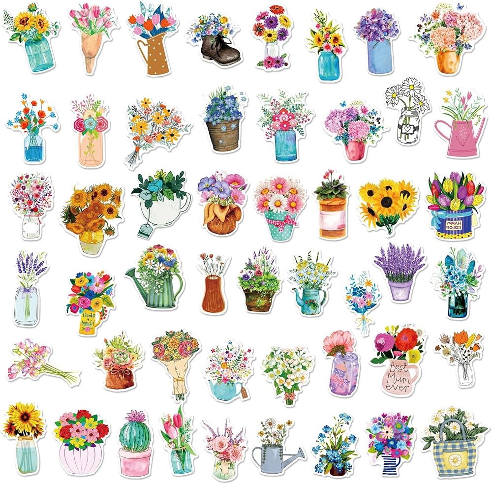 💐What you get: Comes with 50 floral stickers in 50 different styles, ranging in size from 1.5 to 3 inches. No random delivery, no repetition, 100% same picture, fashion decals provide you with enough personalized options.
