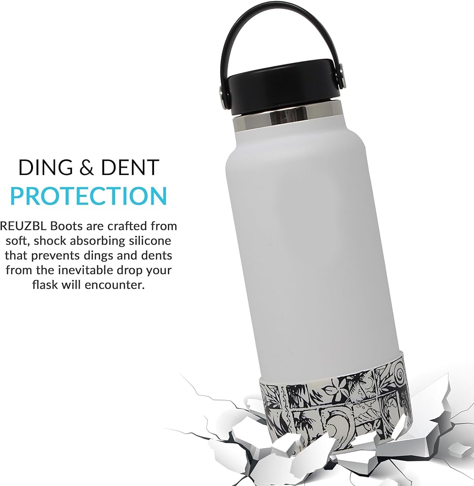 (No dings no dents!) Shield your Hydro Flask 32 and 40 oz bottle flask from dings and dents with the REUZBL Silicone Boot Sleeve - the ultimate armor against accidental drops. Our ingenious accessory, crafted from protective shock-absorbing silicone, serves as a safeguard for your Hydro Flask or similar water bottle.