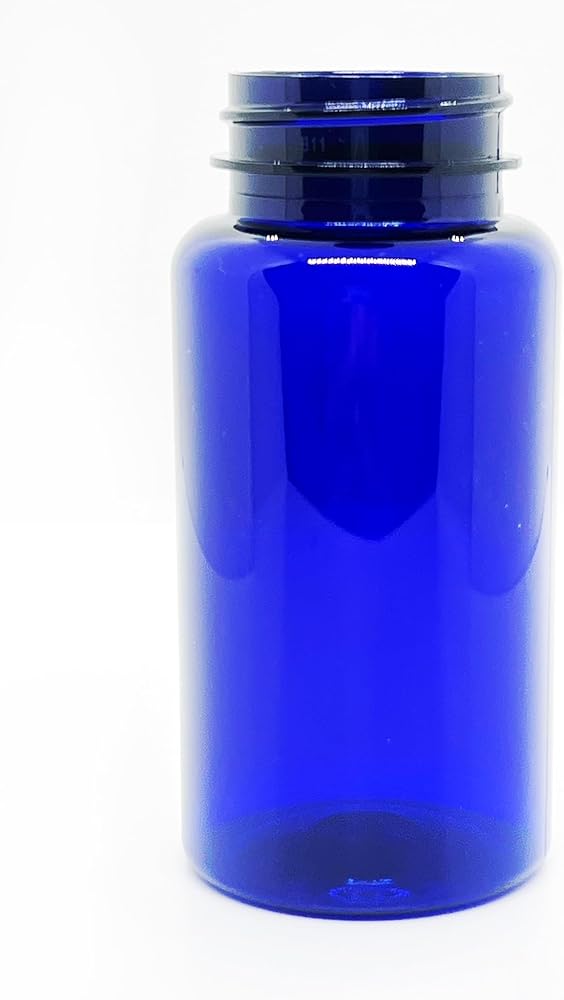 150ml Cobalt Blue PET Bottles with a 38-400 neck finish. 150ml is equivalent to 150cc. These bottles are frequently used in the pharmaceutical and nutraceutical industries for pills, tablets, and capsules. They are great for vitamins, minerals and supplements and are often referred to as packer bottles. Most commonly used in the pharmaceutical, vitamin, nutraceutical, or supplements industries, these bottles are lightweight and recyclable. They offer good impact resistance and are also a beautiful choice for showcasing your products. PET offers excellent Oxygen barrier and moderate Moisture barrier properties. If your product requires higher Moisture protection, it is recommended that you use HDPE bottles.