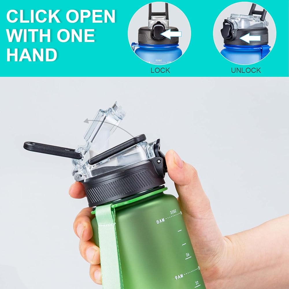 【ترطيب أثناء التنقل】فتح بضغطة واحدة، يمكنك فتح الغطاء بيد واحدة، وشرب الماء والقفل بضغطة واحدة، مما يجعل من السهل الترطيب أثناء القيادة أو الركض أو عندما تكون عالقًا على شيء ما.