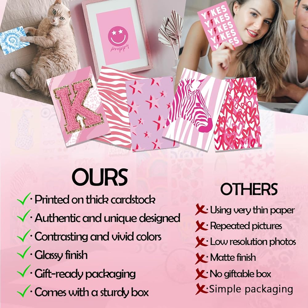 • 【عبوة قيمة لمجموعة ملصقات الحائط】مجموعة صور مجمعة لجمال الحائط تحتوي على 50 صورة من ملصقات بنمط بوهو، مقاس 4 × 6 بوصات، مصممة بـ 50 نمطًا مختلفًا، مطبوعة على ورق البطاقات. هذه المجموعة الجمالية لديكور الحائط لغرفة النوم عصرية وأنيقة لديكور غرفة النوم للفتيات المراهقات أو السكن الجامعي. يمكن أن تغطي هذه المجموعة جدرانًا مقاس 3 × 4 أقدام. إنها متينة للغاية ومقاومة للبهتان ومطبوعة جيدًا. (الخلفيات اللاصقة غير متضمنة في مجموعة البطاقات)