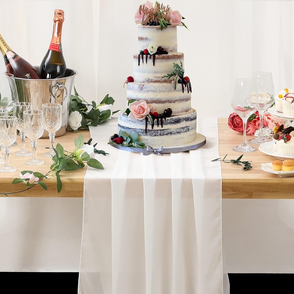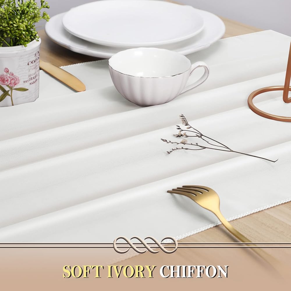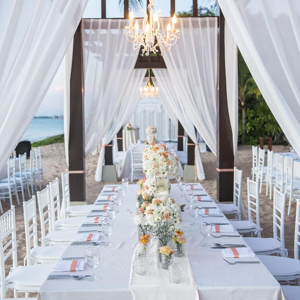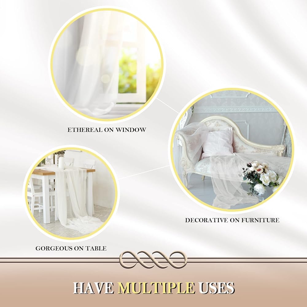 شيفون ناعم بدون خياطة من قطعة واحدة: مفرش الطاولة هذا مصنوع من الشيفون الشفاف عالي الجودة، مثالي للاستخدام كنسيج مميز أو غطاء طاولة يستخدم فوق مفرش طاولة غير شفاف. إنه مقاوم للتجاعيد وناعم جدًا بحيث لا يمكنك العثور إلا على طي يدوي ناعم وجميل على سطح مستوٍ وناعم دون أي تجاعيد أو طبقات، ويتركه يتدفق على الأرض من الجانبين.