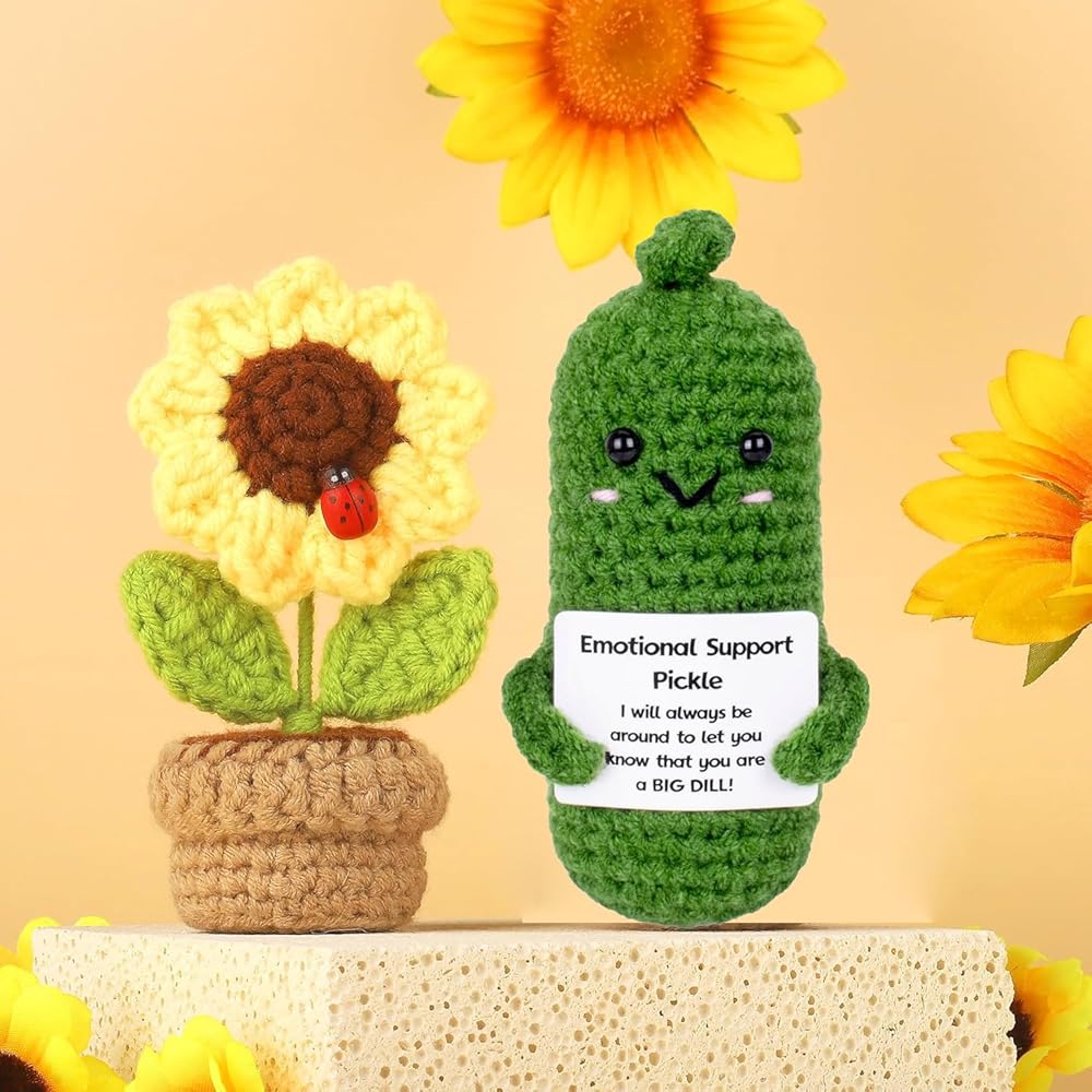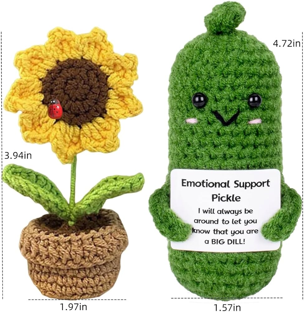 Introducing the Positive Cucumber and Sunflower Pot - The perfect gift for anyone who loves cute and funny surprises! Measuring at a compact 3 inches, this adorable cucumber is sure to bring a smile to anyone's face. Looking for fall gifts for women or unique birthday gift ideas for men? Look no further! The Positive Cucumber is a versatile gift that suits any occasion. Whether it's a birthday gift for mom, dad, grandma, or a friend, this charming cucumber is a guaranteed hit. With its positive vibes and cheerful demeanor, the Positive Cucumber and Sunflower Pot is a great way to spread happiness and inspire positivity. It's a fantastic addition to gift baskets or can be given on its own.