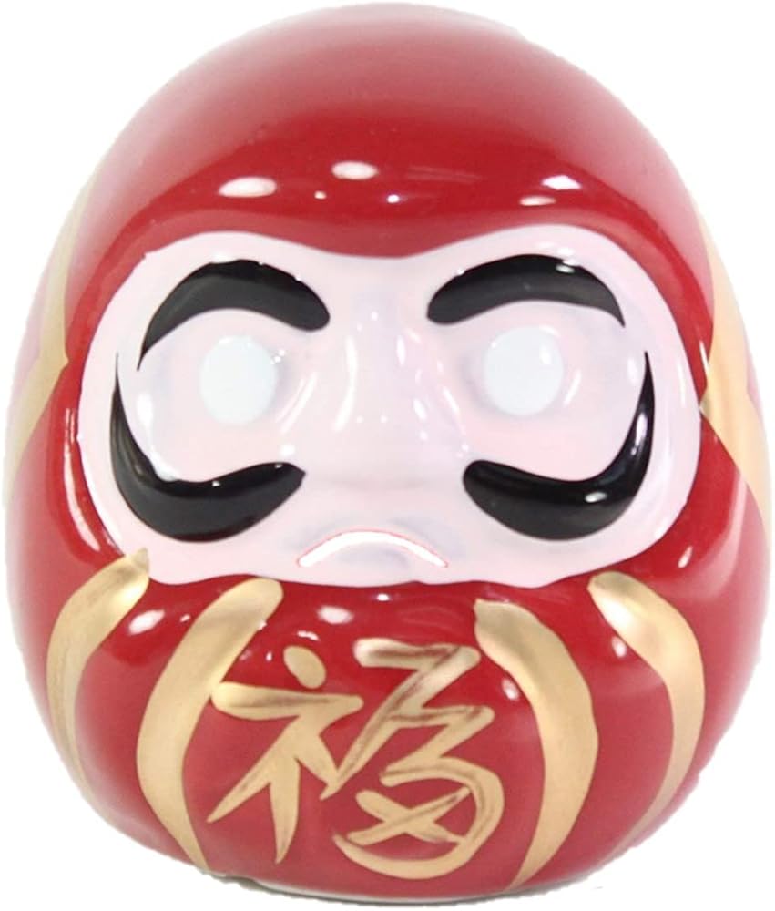 A Daruma doll (Japanese: 達磨, Hepburn: daruma) is a hollow, round, Japanese traditional doll modeled after Bodhidharma, the founder of the Zen tradition of Buddhism. These dolls, though typically red and depicting a bearded man (Bodhidharma), vary greatly in color and design depending on region and artist. Though considered a toy by some, Daruma has a design that is rich in symbolism and is regarded more as a talisman of good luck to the Japanese. Daruma dolls are seen as a symbol of perseverance and good luck, making them a popular gift of encouragement. The doll has also been commercialized by many Buddhist temples to use alongside the setting of goals.