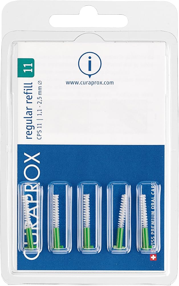 The CPS regular brushes are primarily recommended for secondary prevention in open interdental spaces: especially with fillings, crowns, bridges and particularly stubborn plaque. Accessibility: 1.1 mm / Effectiveness: 2.5 mm