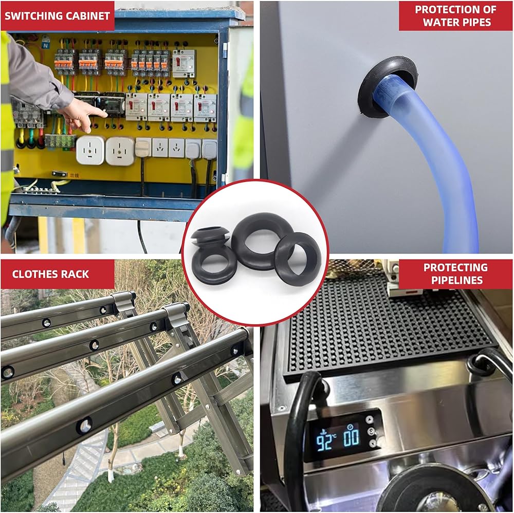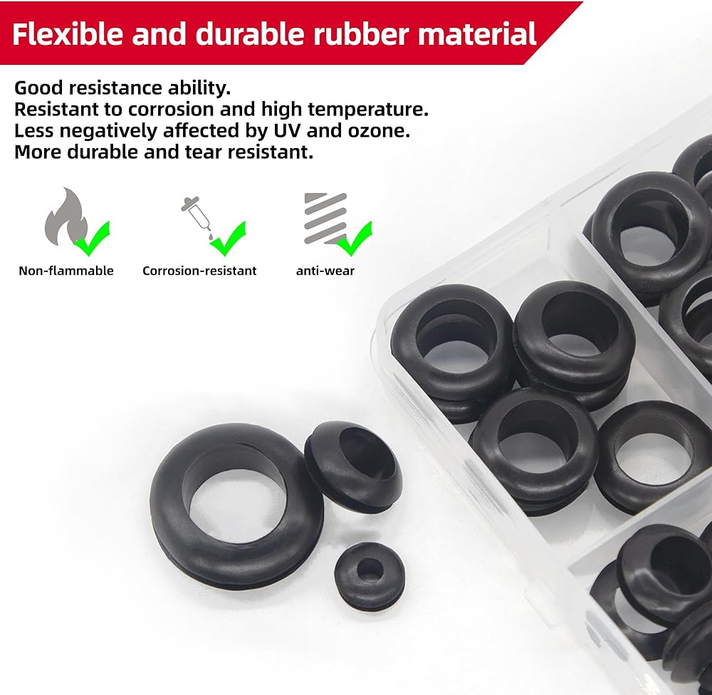 🔴【WIDE APPLICATION】: Rubber grommet assortment kit is useful in many professions like plumbers, mechanics, electricians, DIY'er, etc, used to fit parts together for appliances such as Automotive, RV, Boat, valve, pump, landscaping wiring, furniture, radar detector, dash/rear view Backup camera, GPS navigation, audio speakers and wiring of different mechanisms, etc.