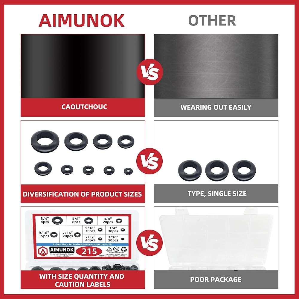 🔴【Refund Guarantee】: We are confident that you will have a great experience with AIMUNOK rubber grommet kit. If it fails to live up to your expectations, simply return them for a full refund. Customer Satisfaction is our TOP priority. if you have any problem, please feel free to contact us.