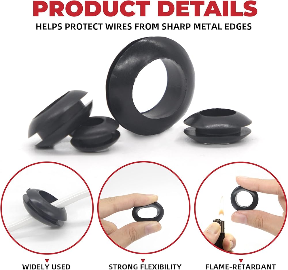 🔴【GREAT FUNCTION】: Closed rubber grommets are commonly used to protect or cover holes and to protect cables or wires from sharp corners or edges, SAFELY and EFFECTIVELY GRIPS WIRE to protect against fire hazards. firewall grommets automotive are also important parts in automotive applications, it can also effectively reduce vibration and are used to seal different important under-the-hood and body applications.